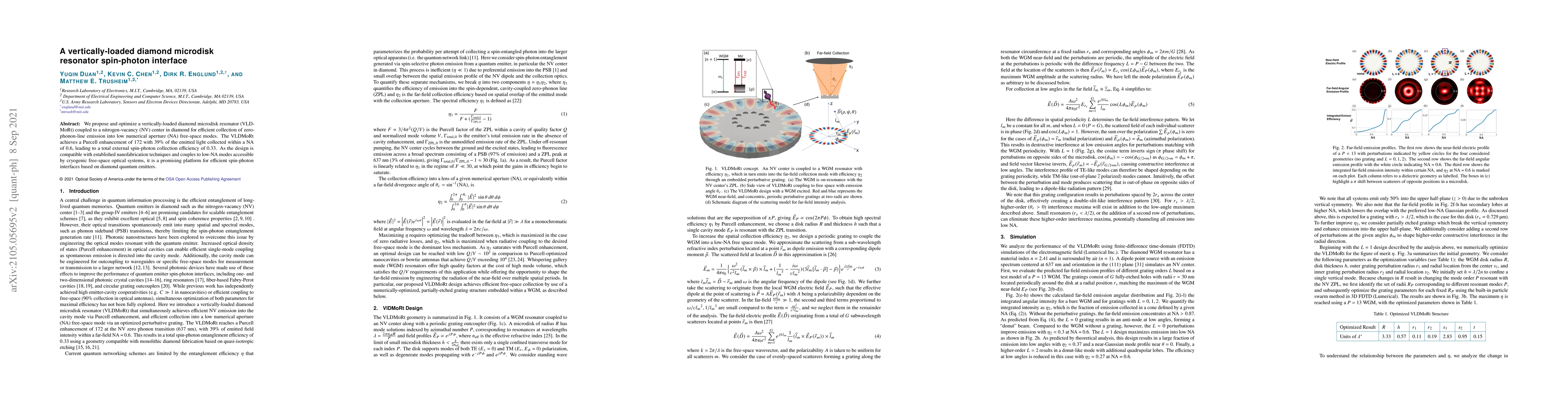 This paper proposes a vertically-loaded diamond microdisk resonator coupled with a nitrogen-vacancy center to efficiently collect zero-phonon-line emission into low numerical aperture free-space modes, achieving a Purcell enhancement of 172 and an external spin-photon collection efficiency of 0.33. The design is promising for efficient spin-photon interfaces using diamond quantum emitters.