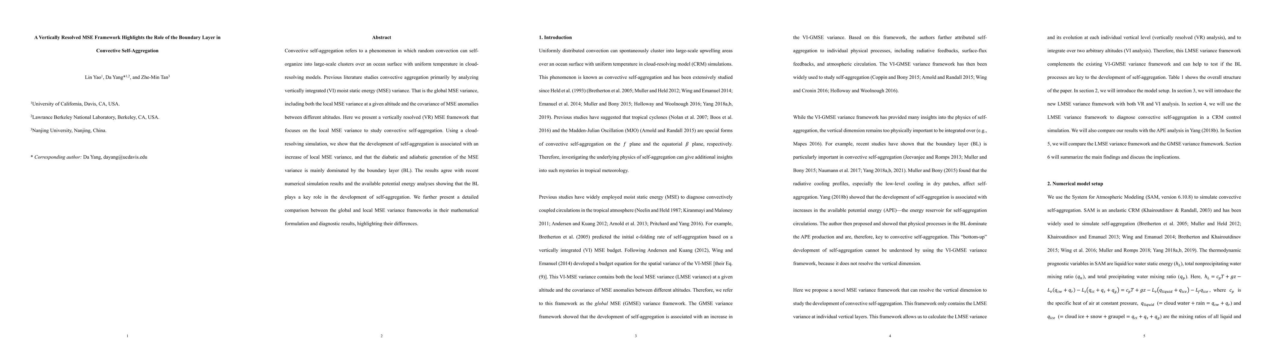 This paper introduces a vertically resolved MSE framework to study convective self-aggregation, demonstrating that local MSE variance increases during self-aggregation and is primarily driven by the boundary layer. The study contrasts this with vertically integrated MSE, emphasizing the boundary layer's crucial role in the process.