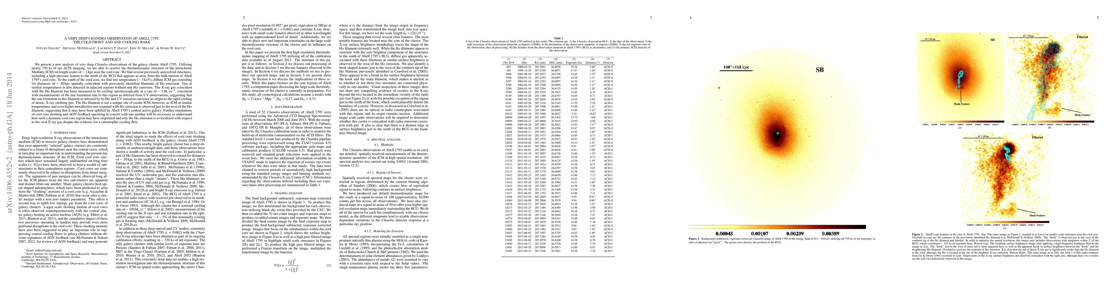 We present a new analysis of very deep Chandra observations of the galaxy cluster Abell 1795. Utilizing nearly 750 ks of net ACIS imaging, we are able to resolve the thermodynamic structure of the Intracluster Medium (ICM) on length scales of ~ 1 kpc near the cool core. We find several previously unresolved structures, including a high pressure feature to the north of the BCG that appears to arise from the bulk motion of Abell 1795's cool core. To the south of the cool core, we find low temperature (~ 3 keV), diffuse ICM gas extending for distances of ~ 50 kpc spatially coincident with previously identified filaments of H-alpha emission. Gas at similar temperatures is also detected in adjacent regions without any H-alpha emission. The X-ray gas coincident with the H-alpha filament has been measured to be cooling spectroscopically at a rate of ~ 1 Solar Masses/ yr, consistent with measurements of the star formation rate in this region as inferred from UV observations, suggesting that the star formation in this filament as inferred by its H$\alpha$ and UV emission can trace its origin to the rapid cooling of dense, X-ray emitting gas. The H-alpha filament is not a unique site of cooler ICM, however, as ICM at similar temperatures and even higher metallicities not cospatial with H$\alpha$ emission is observed just to the west of the H-alpha filament, suggesting that it may have been uplifted by Abell 1795's central active galaxy. Further simulations of cool core sloshing and AGN feedback operating in concert with one another will be necessary to understand how such a dynamic cool core region may have originated and why the H-alpha emission is so localized with respect to the cool X-ray gas despite the evidence for a catastrophic cooling flow.