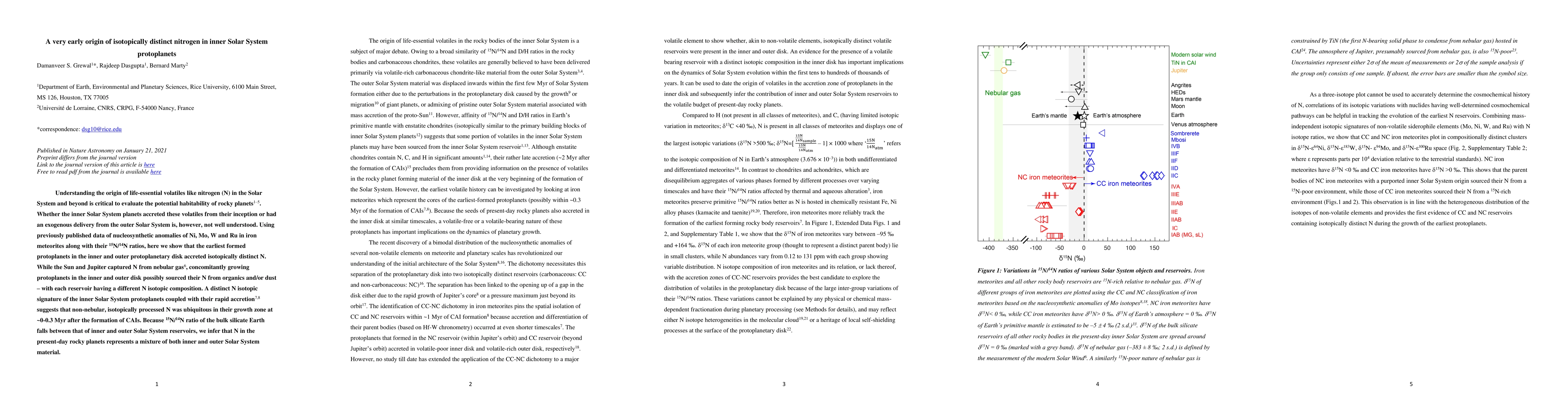 Research shows that early forming protoplanets in the inner Solar System accreted isotopically distinct nitrogen from organics and dust, not just nebular gas, suggesting a complex origin of life-essential volatiles.