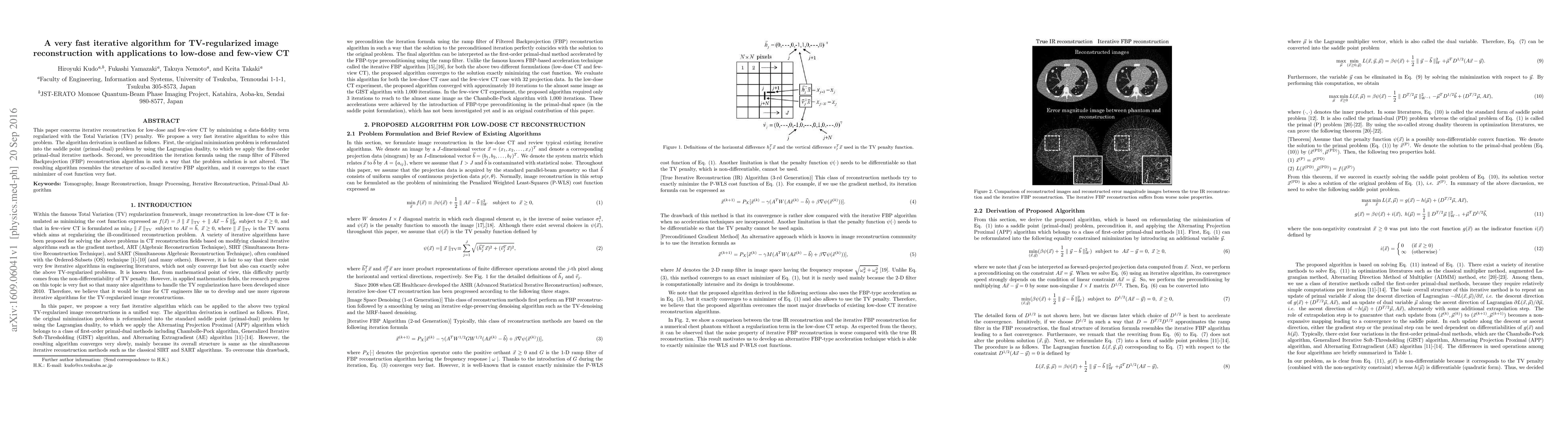 This paper proposes a fast iterative algorithm for TV-regularized image reconstruction in low-dose and few-view CT, utilizing primal-dual methods and preconditioning with the ramp filter of FBP to achieve rapid convergence to the exact minimizer.