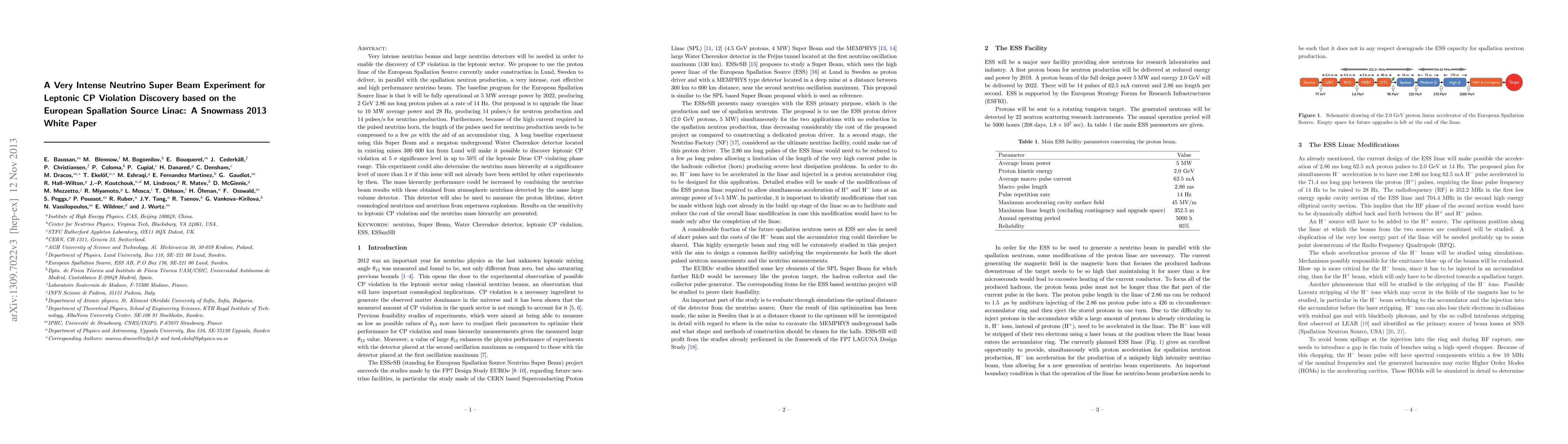 This research proposes a neutrino super beam experiment to discover leptonic CP violation using an upgraded European Spallation Source linac, with the goal of detecting 5 sigma significance in up to 50% of the phase range.