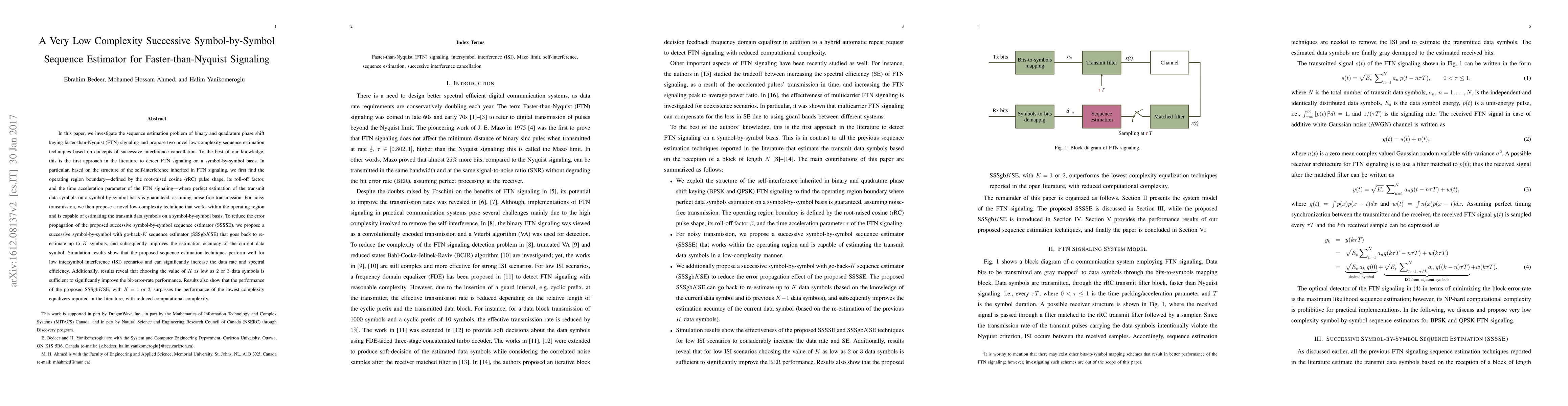 This paper proposes low-complexity sequence estimation techniques for faster-than-Nyquist signaling, introducing a novel successive symbol-by-symbol estimator and a go-back-$K$ method to improve accuracy. The techniques achieve high data rates and spectral efficiency with reduced computational complexity.
