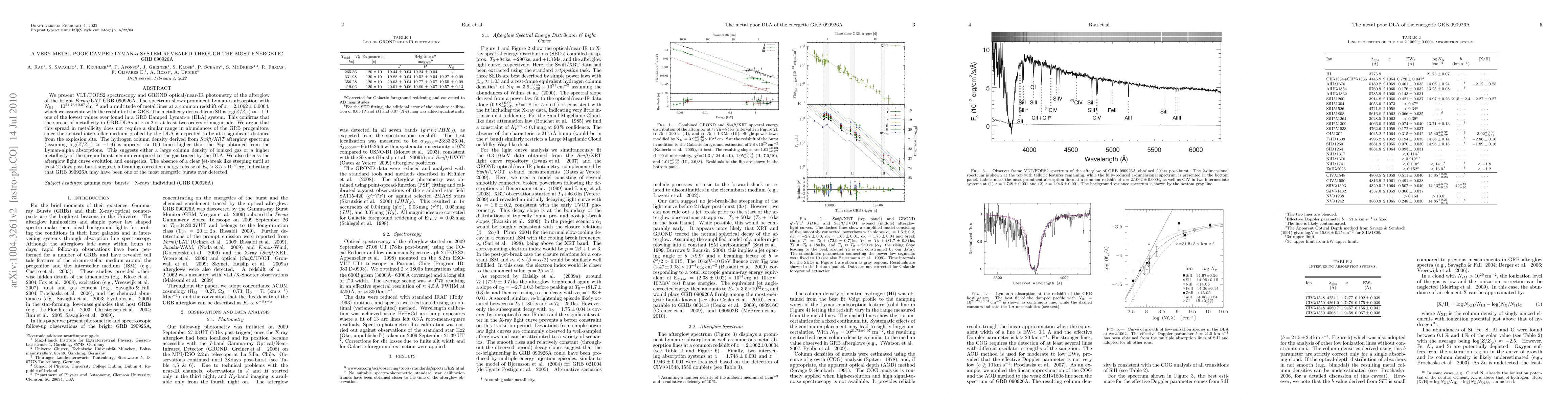 We present VLT/FORS2 spectroscopy and GROND optical/near-IR photometry of the afterglow of the bright Fermi/LAT GRB 090926A. The spectrum shows prominent Lyman-alpha absorption with N_HI = 10^(21.73 +/- 0.07) cm^-2 and a multitude of metal lines at a common redshift of z=2.1062 +/- 0.0004, which we associate with the redshift of the GRB. The metallicity derived from SII is log(Z/Z_sun) ~ -1.9, one of the lowest values ever found in a GRB Damped Lyman-alpha (DLA) system. This confirms that the spread of metallicity in GRB-DLAs at z~2 is at least two orders of magnitude. We argue that this spread in metallicity does not require a similar range in abundances of the GRB progenitors, since the neutral interstellar medium probed by the DLA is expected to be at a significant distance from the explosion site. The hydrogen column density derived from Swift/XRT afterglow spectrum (assuming log(Z/Z_sun) ~ -1.9) is approx. 100 times higher than the N_HI obtained from the Lyman-alpha absorptions. This suggests either a large column density of ionized gas or a higher metallicity of the circum-burst medium compared to the gas traced by the DLA. We also discuss the afterglow light curve evolution and energetics. The absence of a clear jet-break like steeping until at least 21 days post-burst suggests a beaming corrected energy release of E_gamma>3.5x10^52erg, indicating that GRB090926A may have been one of the most energetic bursts ever detected.