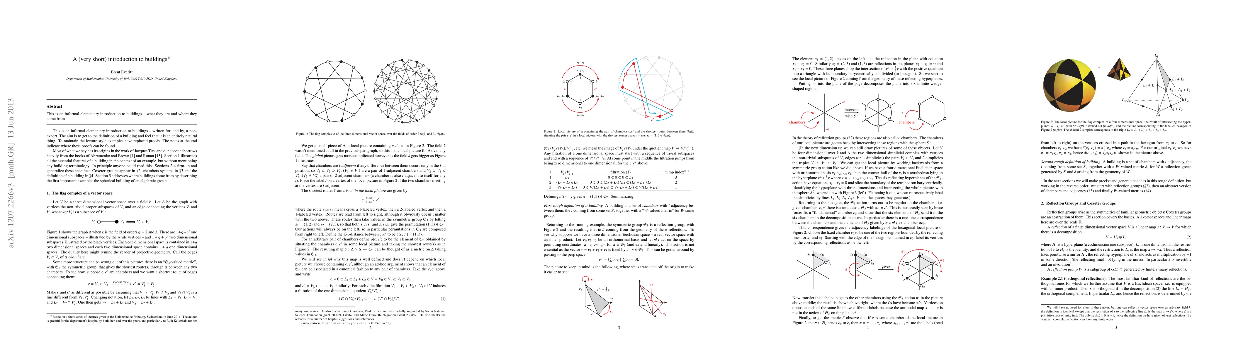 These lectures are an informal elementary introduction to buildings. They are written for, and by, a non-expert. The aim is to get to the definition of a building and feel that it is an entirely natural thing. To maintain the lecture style examples have replaced proofs. The notes at the end indicate where these proofs can be found. Most of what we say has its origins in the work of Jacques Tits, and our account borrows heavily from the books of Abramenko and Brown and of Ronan. Lecture 1 illustrates all the essential features of a building in the context of an example, but without mentioning any building terminology. In principle anyone could read this. Lectures 2-4 firm-up and generalize these specifics: Coxeter groups appear in Lecture 2, chambers systems in Lecture 3 and the definition of a building in Lecture 4. Lecture 5 addresses where buildings come from by describing the first important example: the spherical building of an algebraic group.