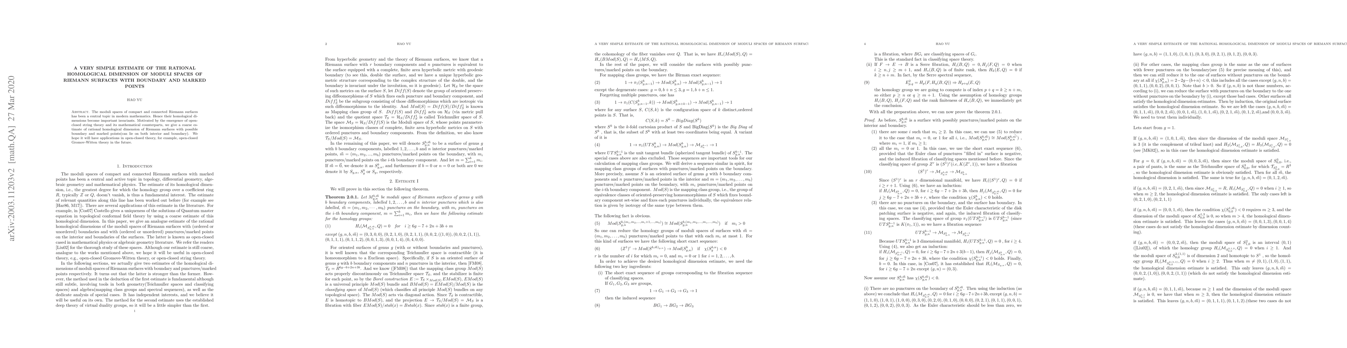 The paper provides an estimate for the rational homological dimension of moduli spaces of Riemann surfaces with boundary and marked points, aiming to contribute to future applications in open-closed string theory, such as open-closed Gromov-Witten theory. This estimation could serve as a fundamental tool in understanding these mathematical structures.