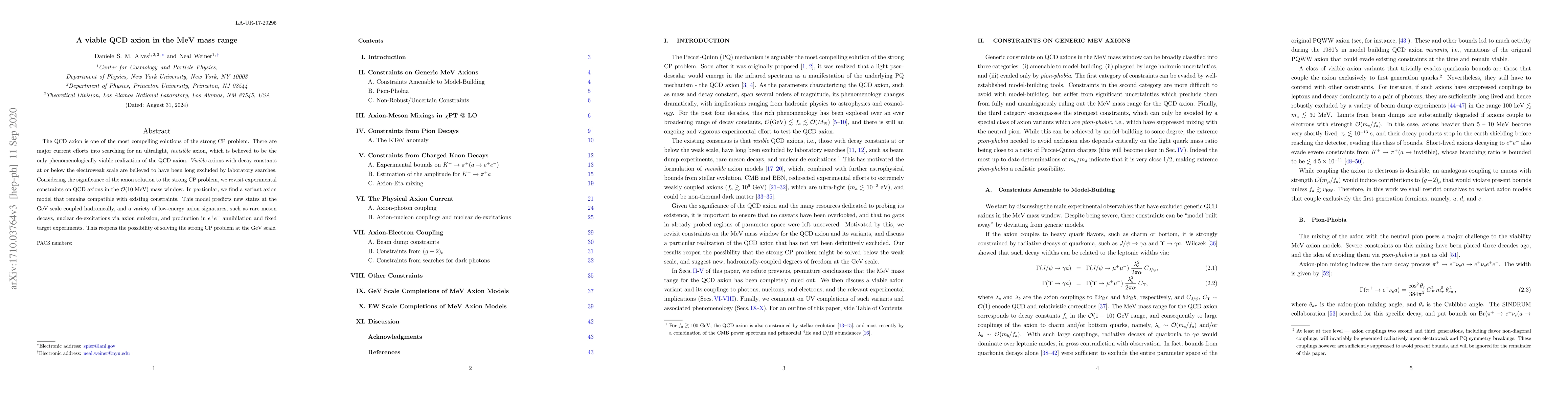 The QCD axion is one of the most compelling solutions of the strong CP problem. There are major current efforts into searching for an ultralight, invisible axion, which is believed to be the only phenomenologically viable realization of the QCD axion. Visible axions with decay constants at or below the electroweak scale are believed to have been long excluded by laboratory searches. Considering the significance of the axion solution of the strong CP problem, we revisit experimental constraints on QCD axions in the O(10 MeV) mass window. In particular, we find a variant axion model that remains compatible with existing constraints. This model predicts new states at the GeV scale coupled hadronically, and a variety of low-energy axion signatures, such as rare meson decays, nuclear de-excitations via axion emission, production in $e^+e^-$ annihilation and fixed target experiments. This reopens the possibility of solving the strong CP problem at the GeV scale.