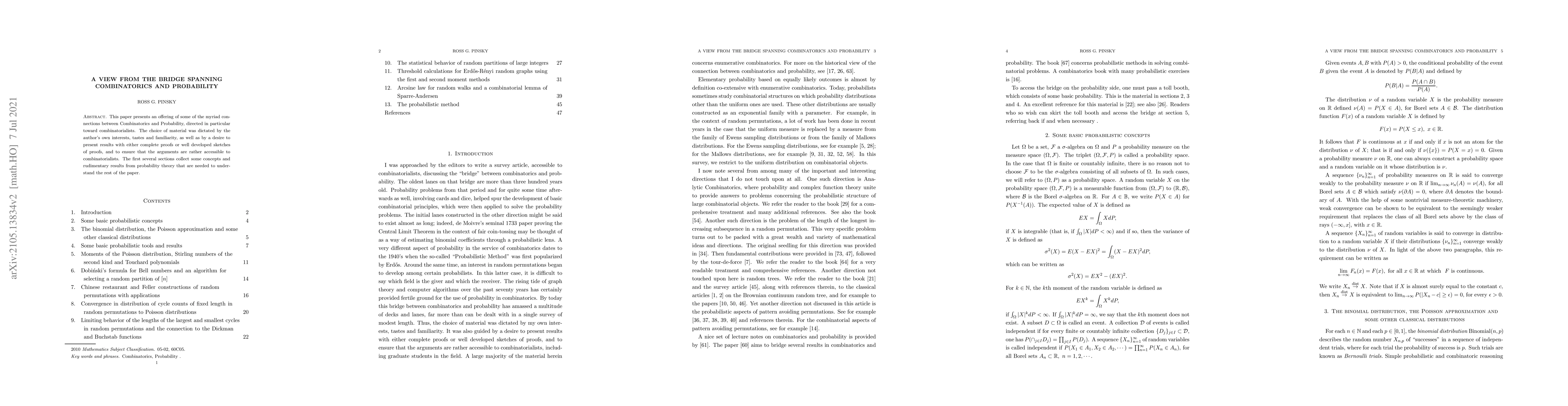 This paper explores connections between combinatorics and probability, focusing on accessible proofs of key results for combinatorialists. It collects concepts from probability theory to provide a comprehensive overview of the intersection between these two fields.