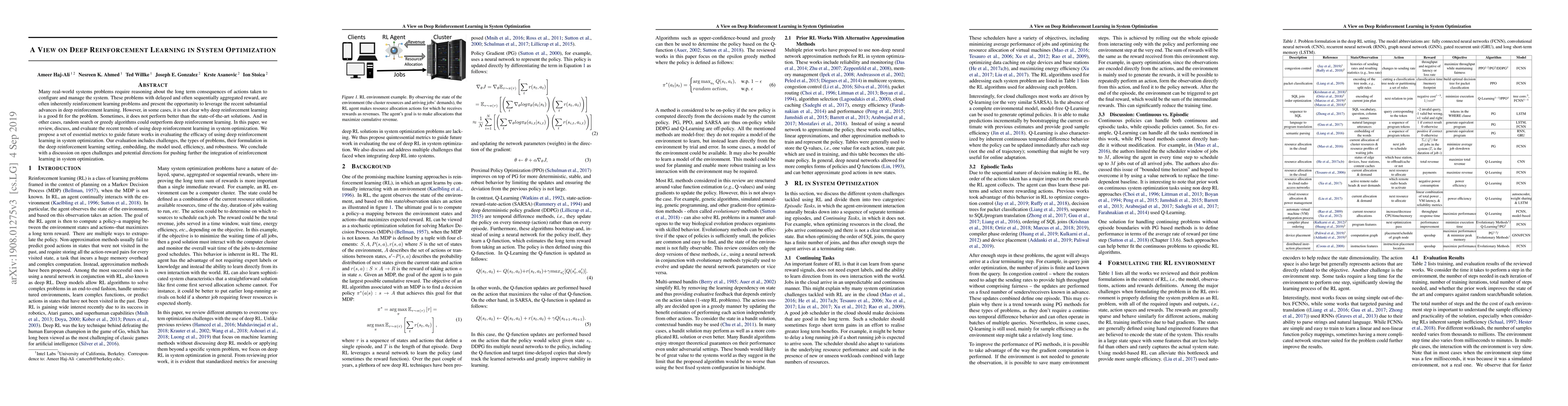This paper reviews the application of deep reinforcement learning in system optimization, discussing its efficacy and limitations compared to other methods. It proposes metrics for evaluating its performance and concludes with open challenges and future research directions.
