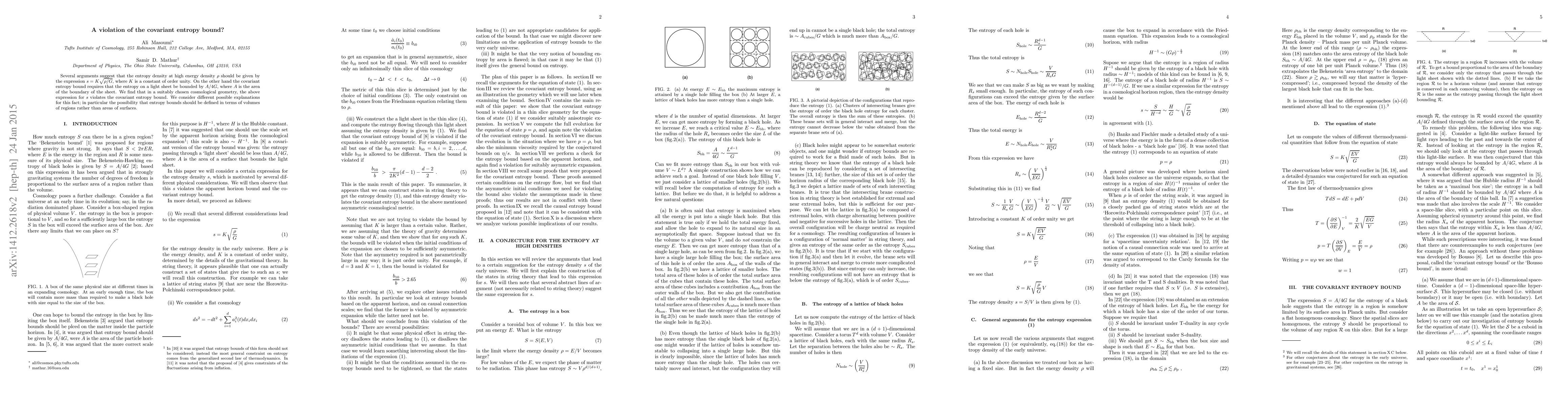 Several arguments suggest that the entropy density at high energy density $\rho$ should be given by the expression $s=K\sqrt{\rho/G}$, where $K$ is a constant of order unity. On the other hand the covariant entropy bound requires that the entropy on a light sheet be bounded by $A/4G$, where $A$ is the area of the boundary of the sheet. We find that in a suitably chosen cosmological geometry, the above expression for $s$ violates the covariant entropy bound. We consider different possible explanations for this fact; in particular the possibility that entropy bounds should be defined in terms of volumes of regions rather than areas of surfaces.