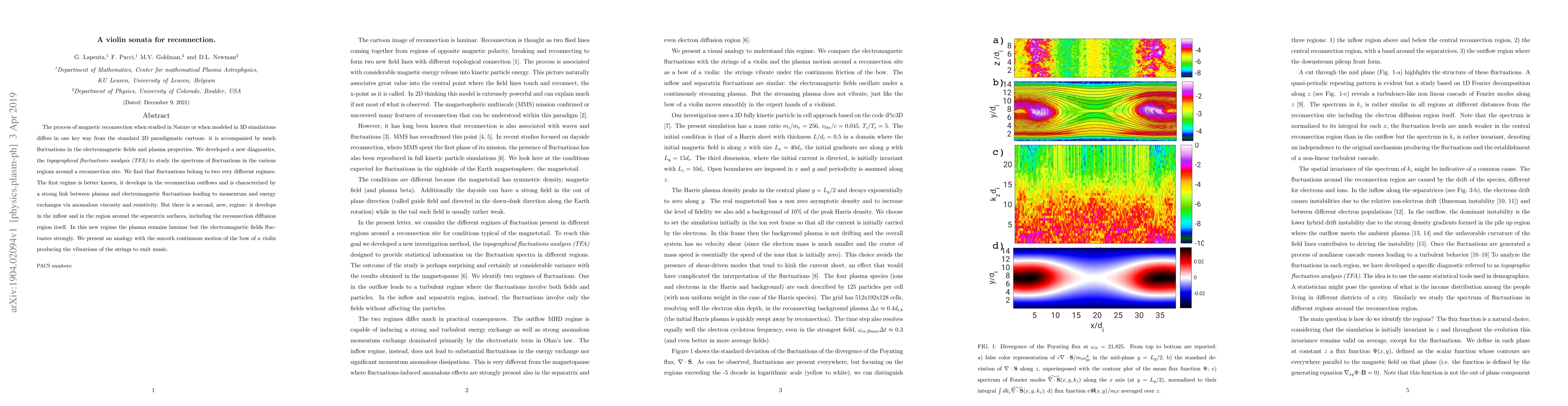 The process of magnetic reconnection when studied in Nature or when modeled in 3D simulations differs in one key way from the standard 2D paradigmatic cartoon: it is accompanied by much fluctuations in the electromagnetic fields and plasma properties. We developed a new diagnostics, the topographical fluctuations analysis (TFA) to study the spectrum of fluctuations in the various regions around a reconnection site. We find that fluctuations belong to two very different regimes. The first regime is better known, it develops in the reconnection outflows and is characterized by a strong link between plasma and electromagnetic fluctuations leading to momentum and energy exchanges via anomalous viscosity and resistivity. But there is a second, new, regime: it develops in the inflow and in the region around the separatrix surfaces, including the reconnection diffusion region itself. In this new regime the plasma remains laminar but the electromagnetic fields fluctuates strongly. We present an analogy with the smooth continuous motion of the bow of a violin producing the vibrations of the strings to emit music.
