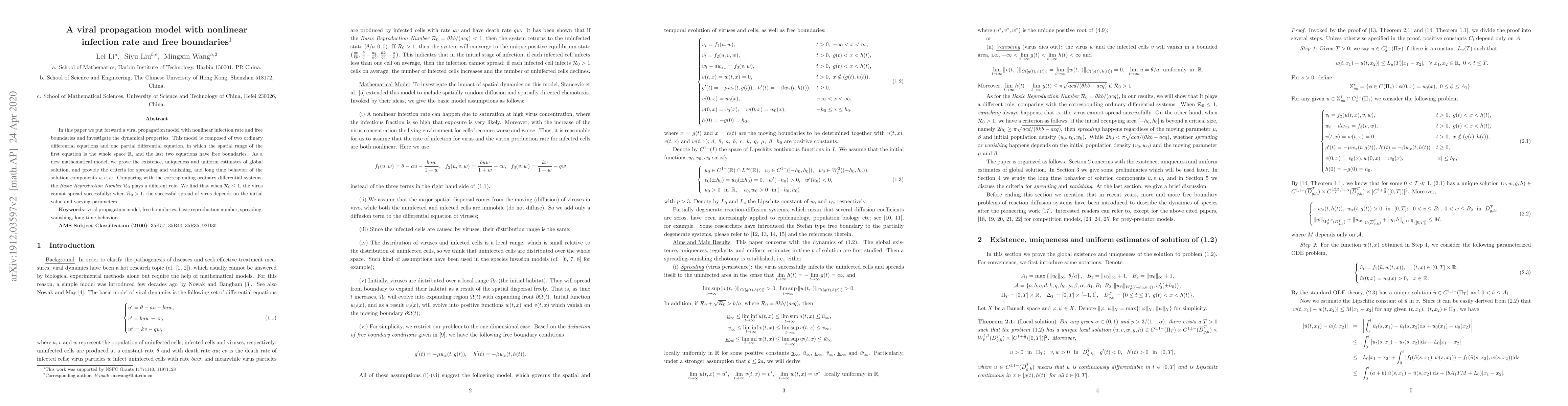 A viral propagation model with a nonlinear infection rate and free boundaries is proposed, showing that the virus can spread successfully when the Basic Reproduction Number exceeds 1, depending on initial values and varying parameters.