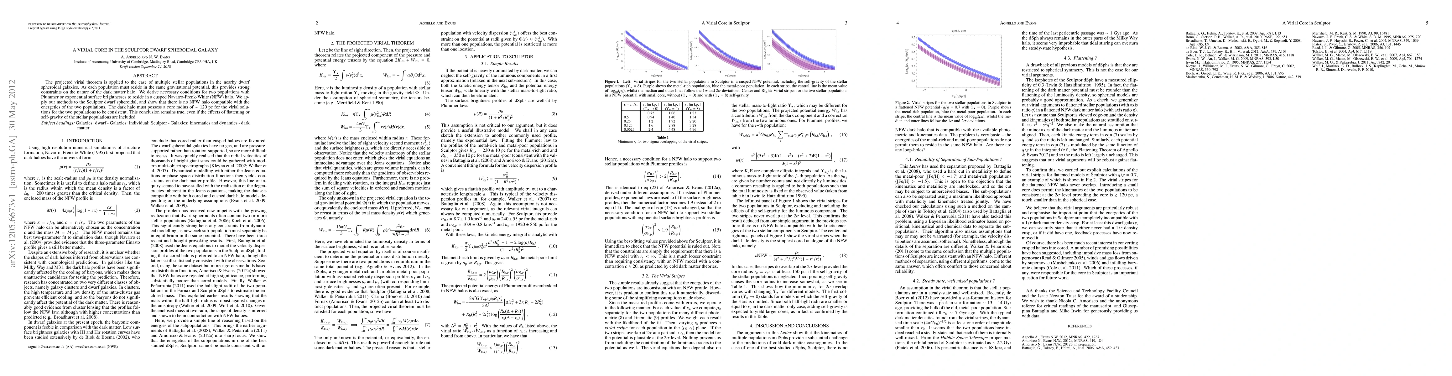 The study applies the projected virial theorem to the Sculptor dwarf spheroidal galaxy, finding that its stellar populations cannot reside in a cusped Navarro-Frenk-White dark matter halo. Instead, a dark halo with a core radius of ~120 pc is required to satisfy the virial conditions.
