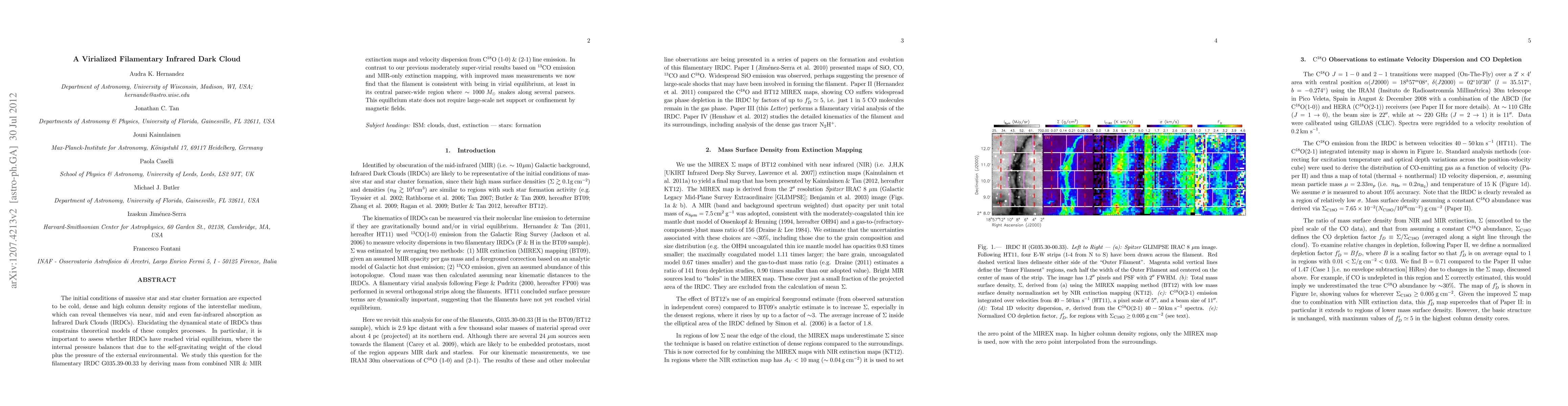 The initial conditions of massive star and star cluster formation are expected to be cold, dense and high column density regions of the interstellar medium, which can reveal themselves via near, mid and even far-infrared absorption as Infrared Dark Clouds (IRDCs). Elucidating the dynamical state of IRDCs thus constrains theoretical models of these complex processes. In particular, it is important to assess whether IRDCs have reached virial equilibrium, where the internal pressure balances that due to the self-gravitating weight of the cloud plus the pressure of the external environmental. We study this question for the filamentary IRDC G035.39-00.33 by deriving mass from combined NIR & MIR extinction maps and velocity dispersion from C18O (1-0) & (2-1) line emission. In contrast to our previous moderately super-virial results based on 13CO emission and MIR-only extinction mapping, with improved mass measurements we now find that the filament is consistent with being in virial equilibrium, at least in its central parsec-wide region where ~1000 M_Sun snakes along several parsecs. This equilibrium state does not require large-scale net support or confinement by magnetic fields.