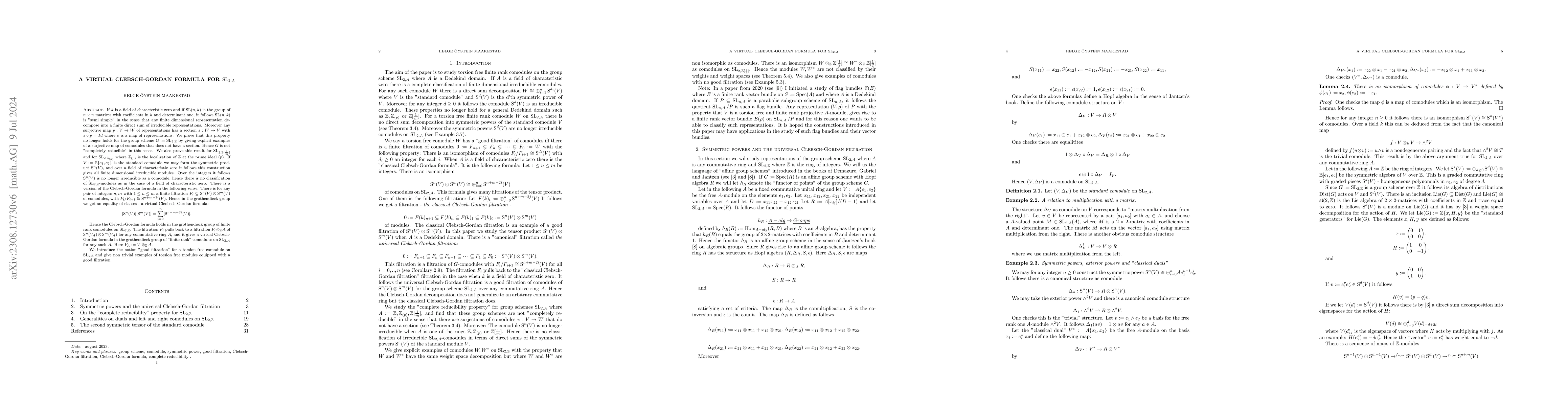 The paper explores the group scheme $\operatorname{SL}(2,A)$ and its comodules, introducing a virtual Clebsch-Gordan formula for the symmetric powers of a free rank $2$ module $V$ over $A$. It proves a filtration structure for tensor products of symmetric powers over $\mathbb{Z}$, revealing a valid Clebsch-Gordan formula in the Grothendieck group of coherent comodules, and discusses the non-complete reducibility of the group scheme.