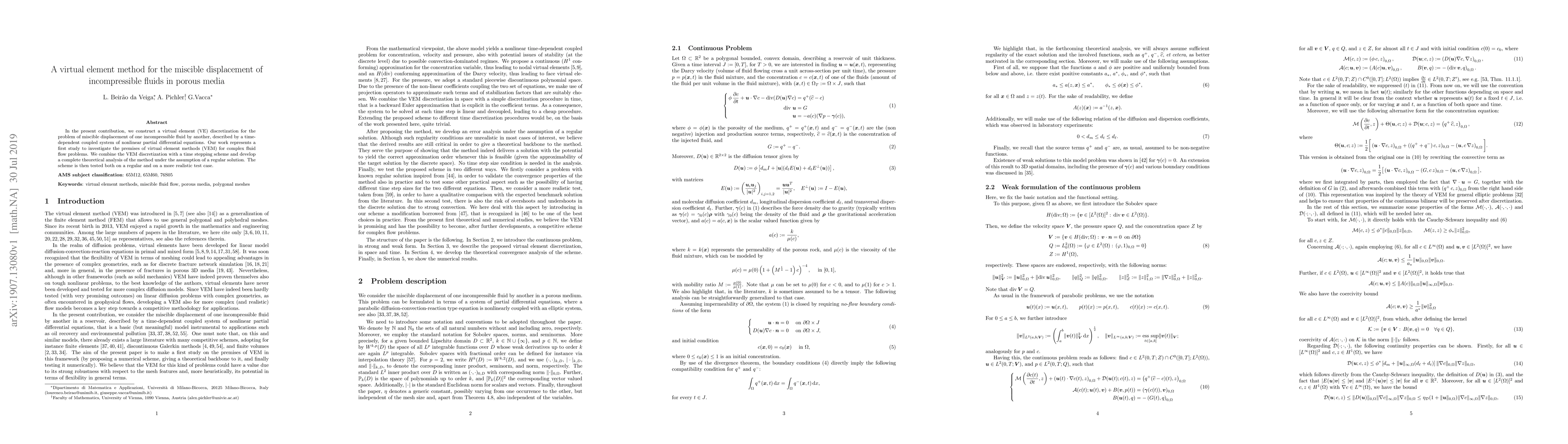 This paper introduces a virtual element method (VEM) for simulating the miscible displacement of incompressible fluids in porous media, represented by a nonlinear PDE system. The authors provide a theoretical analysis and test the method on both regular and realistic scenarios.