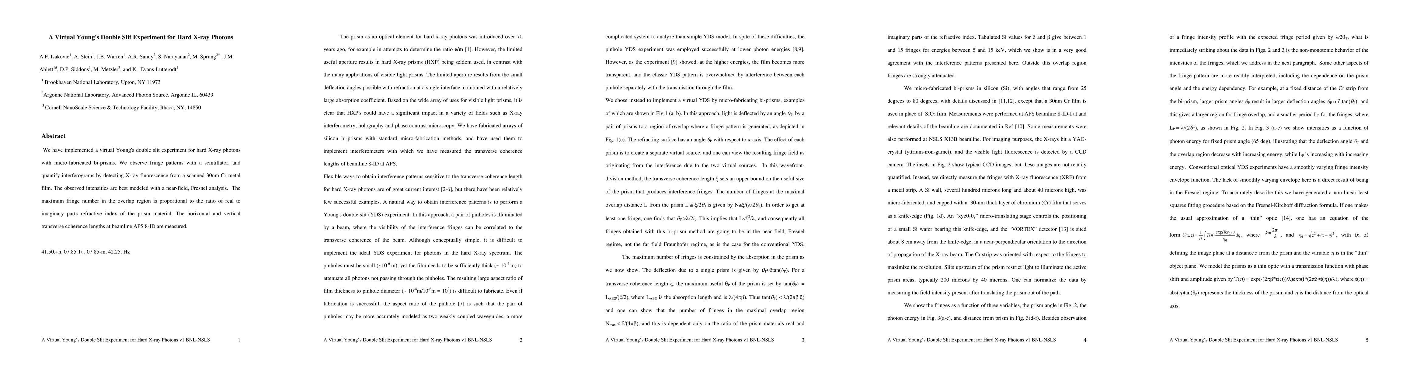 The paper presents a novel implementation of a virtual Young's double slit experiment for hard X-ray photons using micro-fabricated bi-prisms, along with a quantitative analysis using X-ray fluorescence from a thin metal film.