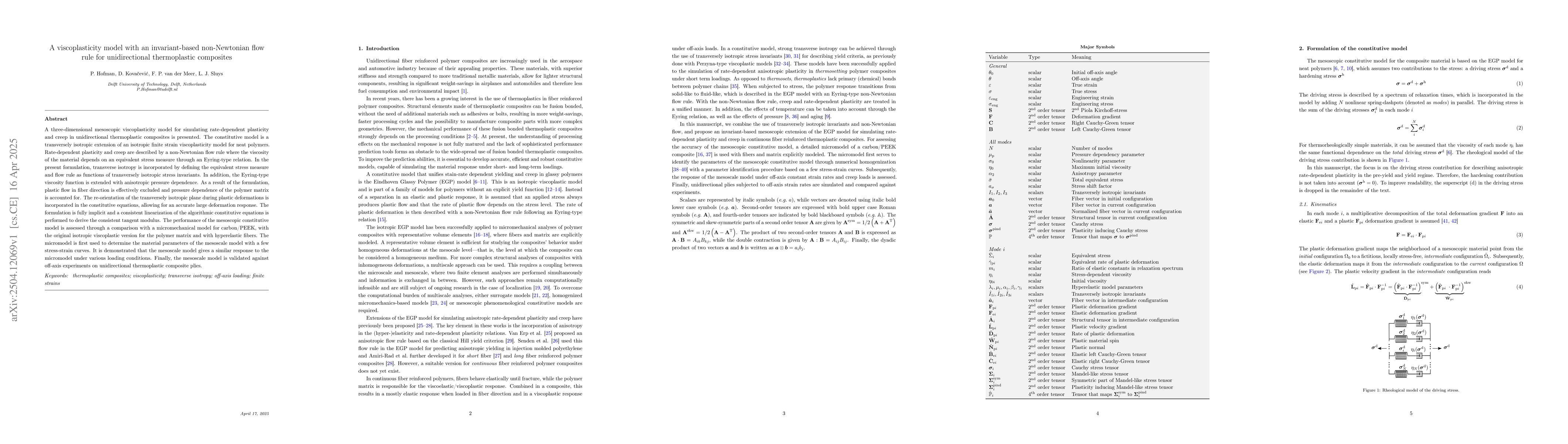 The research presents a mesoscopic viscoplasticity model for simulating rate-dependent plasticity and creep in unidirectional thermoplastic composites, extending an isotropic finite strain viscoplasticity model for neat polymers to incorporate transverse isotropy.