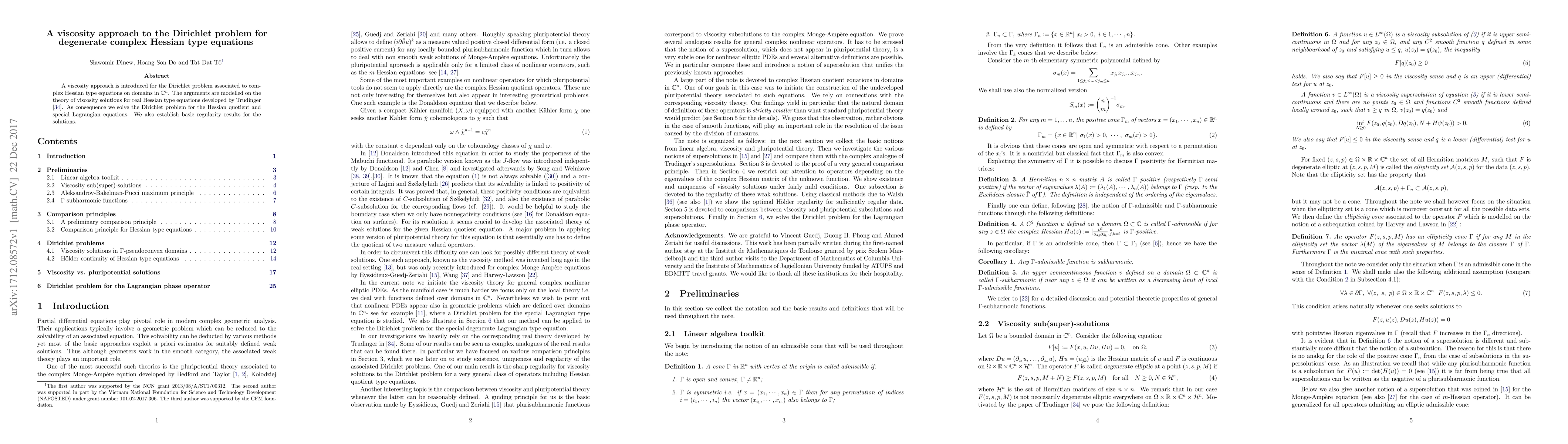 This paper introduces a viscosity approach to solve the Dirichlet problem for degenerate complex Hessian type equations, extending Trudinger's theory of real Hessian equations. It successfully addresses the Dirichlet problem for Hessian quotient and special Lagrangian equations, along with establishing basic regularity results for the solutions.