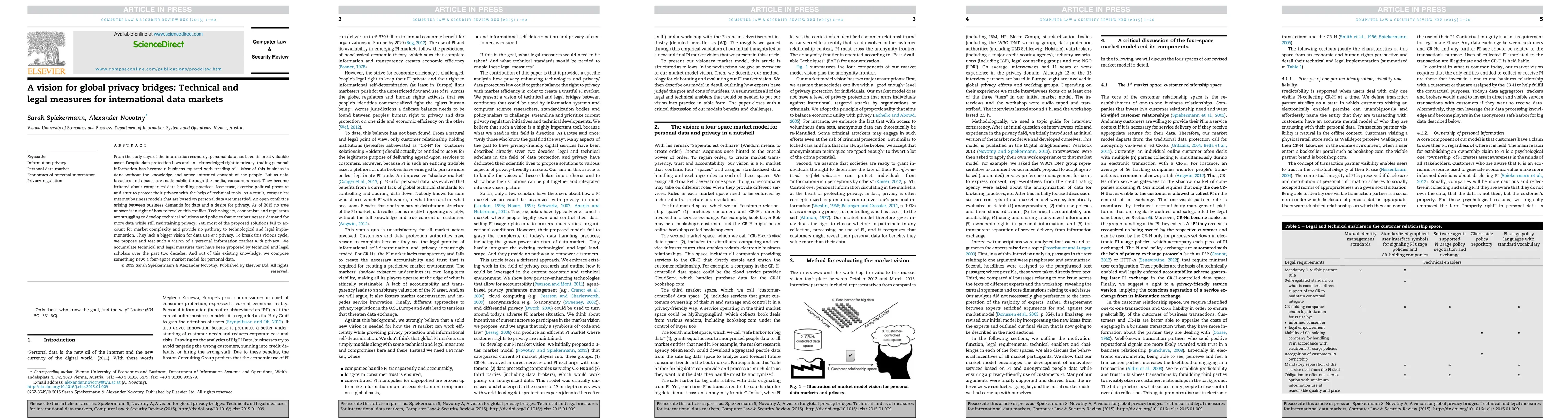 This paper proposes a comprehensive vision for bridging international data markets with robust privacy protections, combining technical and legal measures. It introduces a four-space market model for personal data, aiming to balance business data demands with consumer privacy, addressing the lack of effective solutions in current market complexities.