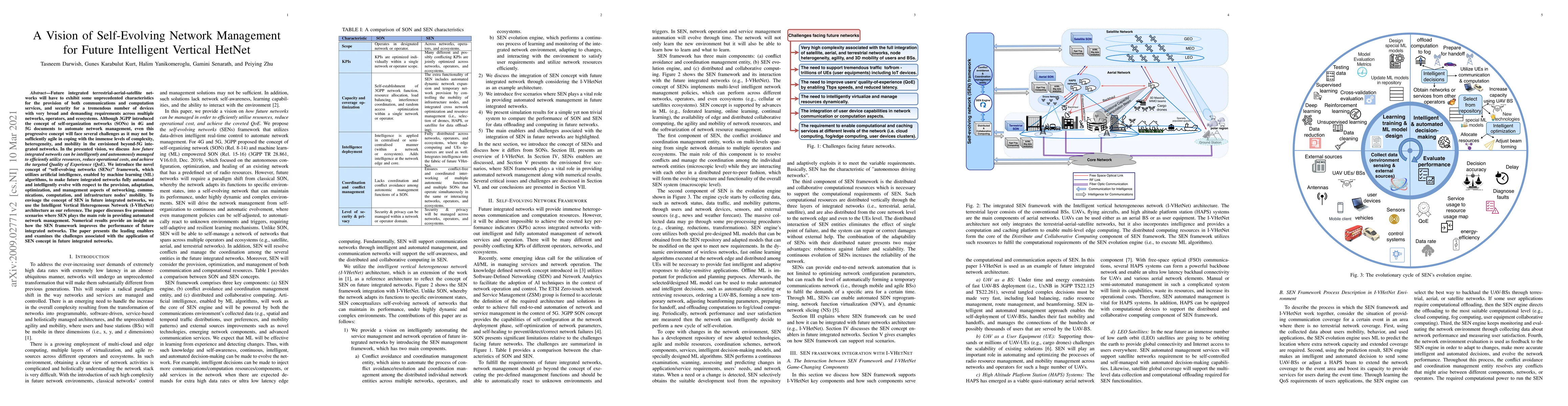 This paper proposes a "self-evolving networks (SENs)" framework to manage future integrated terrestrial-aerial-satellite networks, leveraging AI and machine learning for autonomous resource utilization and operational cost reduction. The SEN framework, based on the Intelligent Vertical Heterogeneous Network (I-VHetNet) architecture, aims to enhance Quality of Experience (QoE) through automated adaptation and optimization in complex, heterogeneous, and mobile environments.