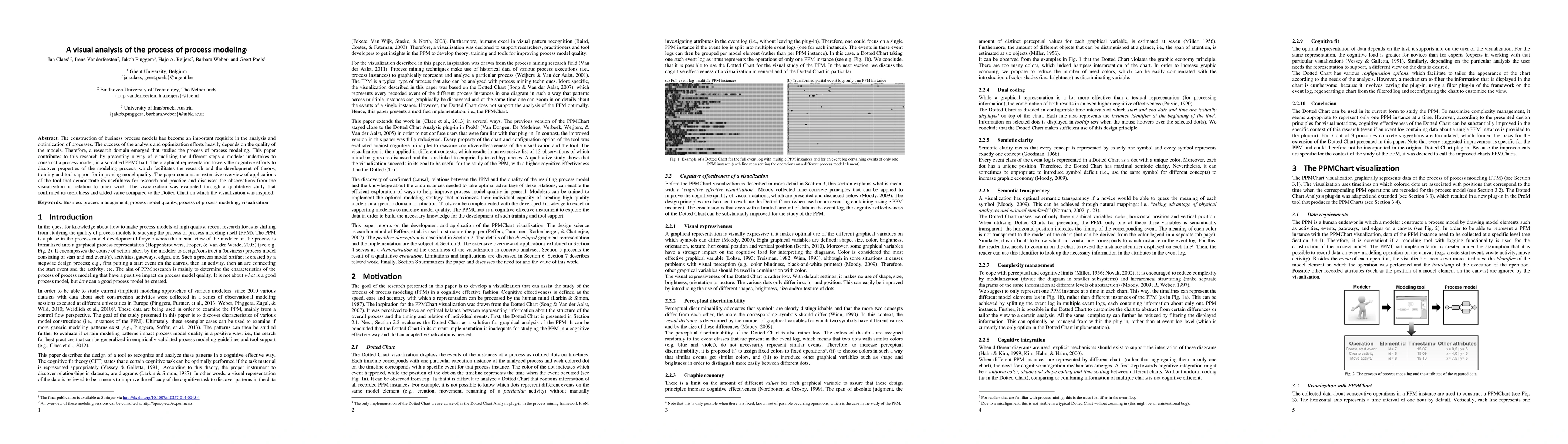 This paper introduces a visual tool, the 'process of process modeling Chart', to represent and analyze the steps involved in creating business process models. The tool aids researchers and practitioners in understanding modeling processes, improving model quality, and supporting theory and tool development. It has been validated through a qualitative study, proving its usefulness over existing methods.