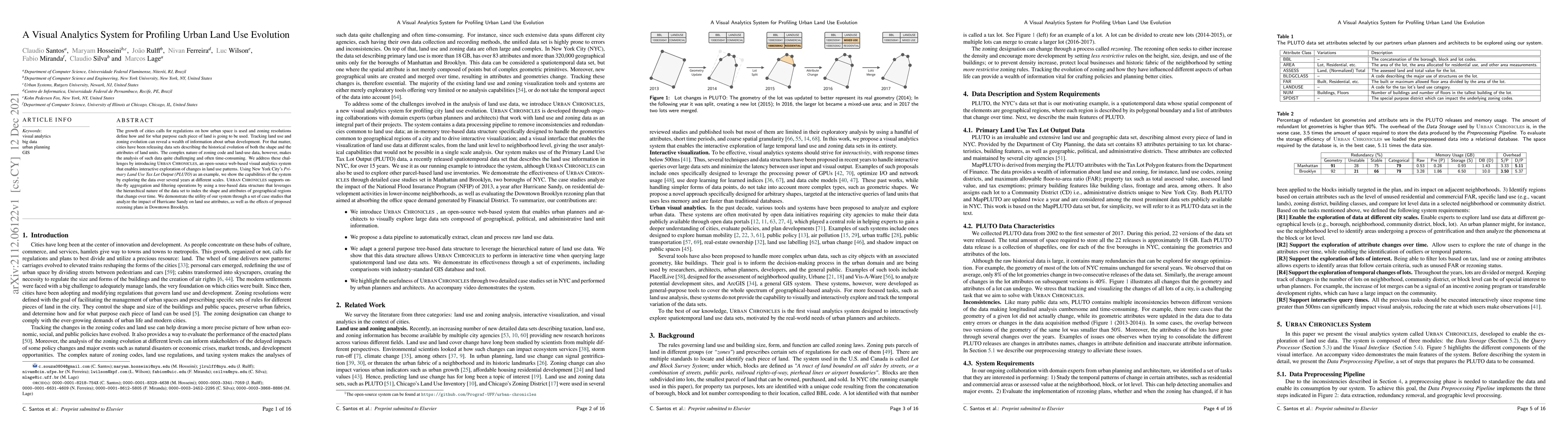 Urban Chronicles is an open-source visual analytics system designed to facilitate the interactive exploration of urban land use evolution, addressing the complexities of zoning data analysis. The system demonstrates its utility through case studies analyzing Hurricane Sandy's impact and proposed rezoning plans in Downtown Brooklyn using New York City's PLUTO data.