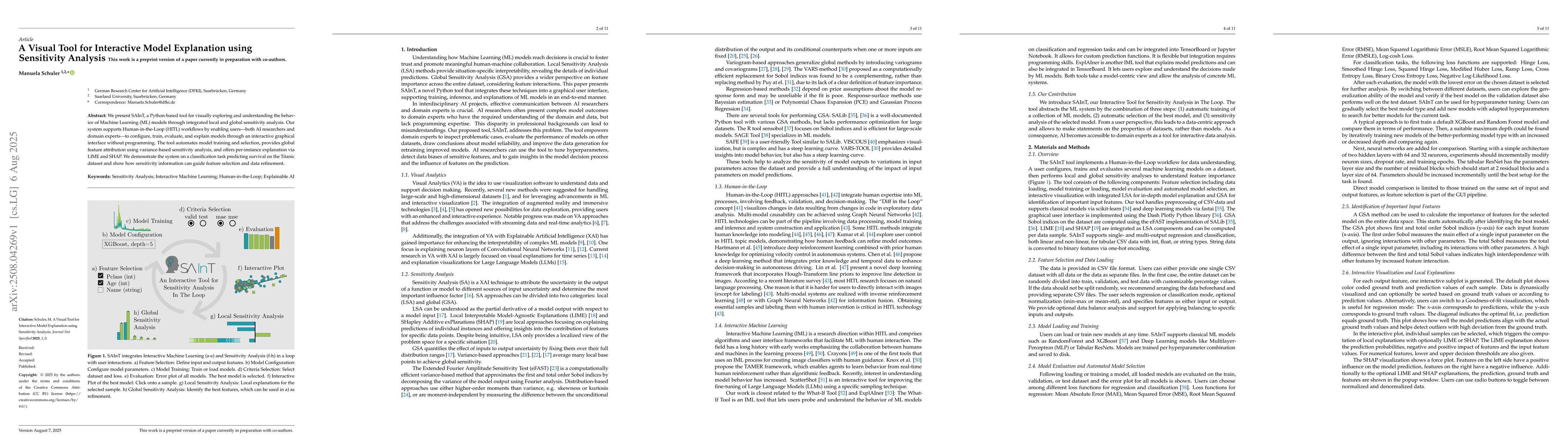 We present SAInT, a Python-based tool for visually exploring and understanding the behavior of Machine Learning (ML) models through integrated local and global sensitivity analysis. Our system supports Human-in-the-Loop (HITL) workflows by enabling users - both AI researchers and domain experts - to configure, train, evaluate, and explain models through an interactive graphical interface without programming. The tool automates model training and selection, provides global feature attribution using variance-based sensitivity analysis, and offers per-instance explanation via LIME and SHAP. We demonstrate the system on a classification task predicting survival on the Titanic dataset and show how sensitivity information can guide feature selection and data refinement.
