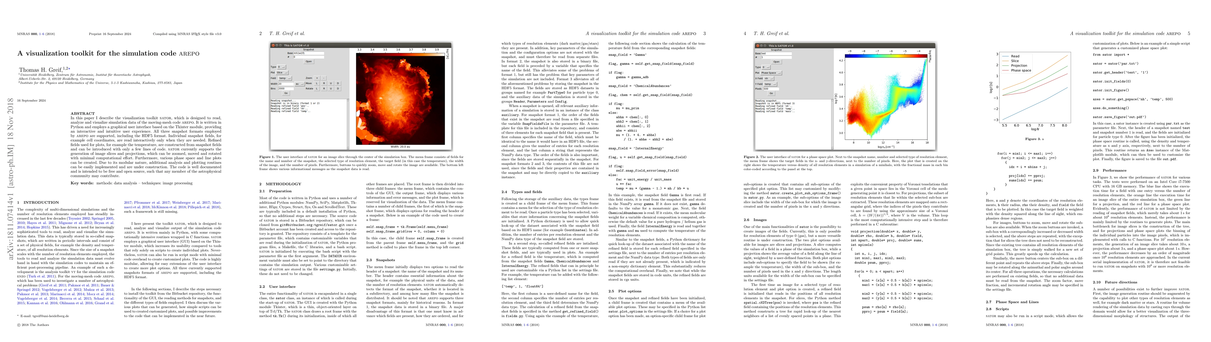 This paper introduces Sator, a Python-based visualization toolkit for the Arepo simulation code, featuring a Tkinter GUI for interactive data analysis and visualization. It supports Arepo's snapshot formats and allows for efficient generation of slices, projections, and various plots, with plans for further modular enhancements.