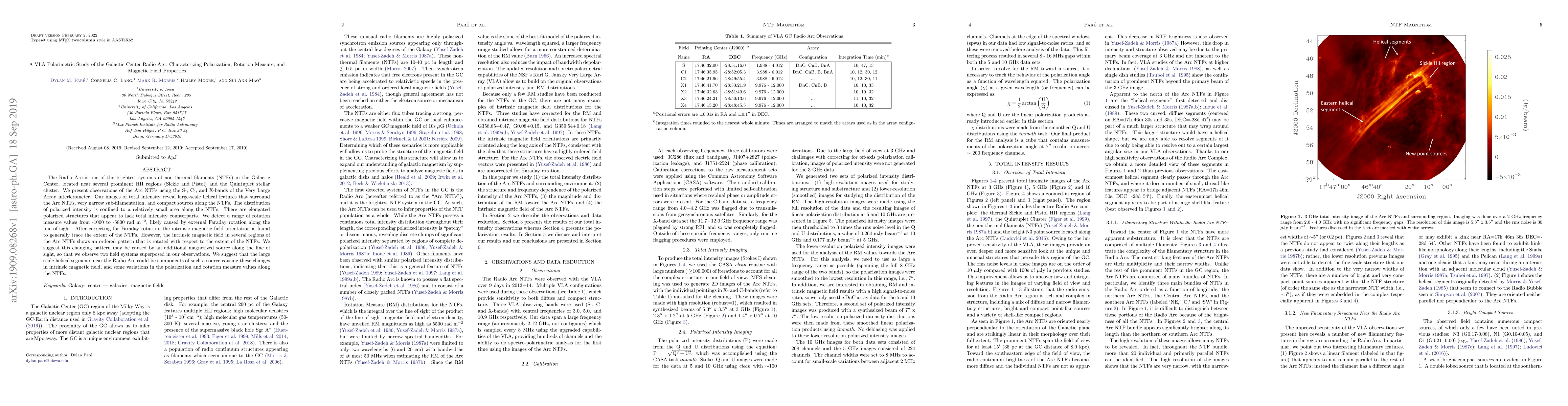 This study uses VLA polarimetric observations to analyze the Galactic Center Radio Arc's non-thermal filaments, revealing helical features and polarized structures. The intrinsic magnetic field orientation generally follows the filaments but shows an ordered pattern rotated in some regions, suggesting the presence of an additional magnetized source superposed along the line of sight.