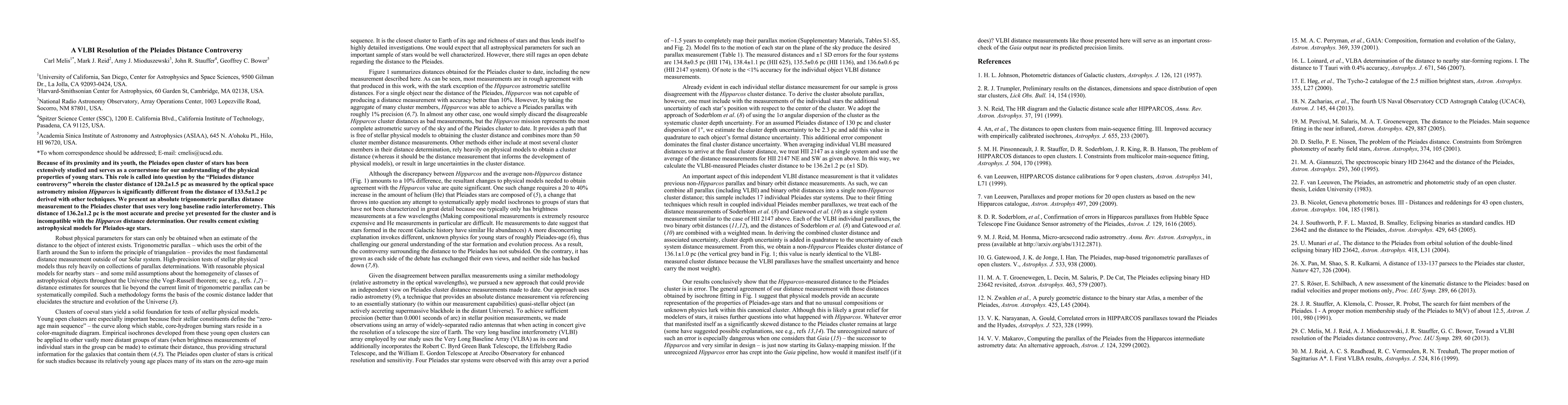 This paper resolves the Pleiades distance controversy using very long baseline interferometry (VLBI) to measure a precise distance of 136.2±1.2 pc, refuting the Hipparcos value of 120.2±1.5 pc and supporting existing astrophysical models for young stars.