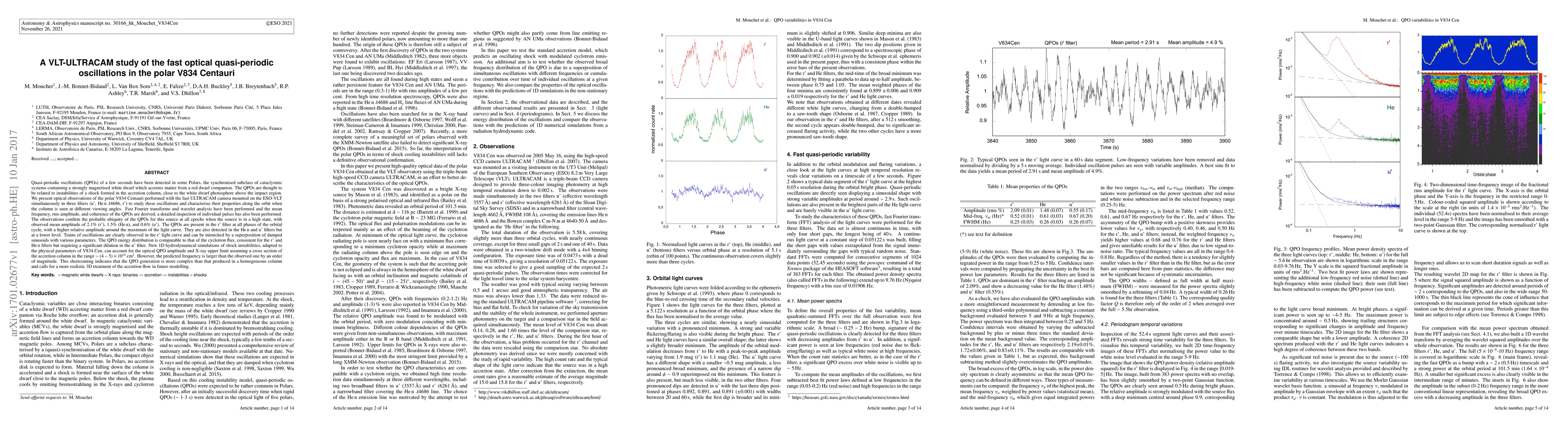 Fast optical quasi-periodic oscillations were detected in V834 Centauri, a polar star, using the ULTRACAM camera, revealing trains of oscillations that mimic damped sinusoids with various parameters.