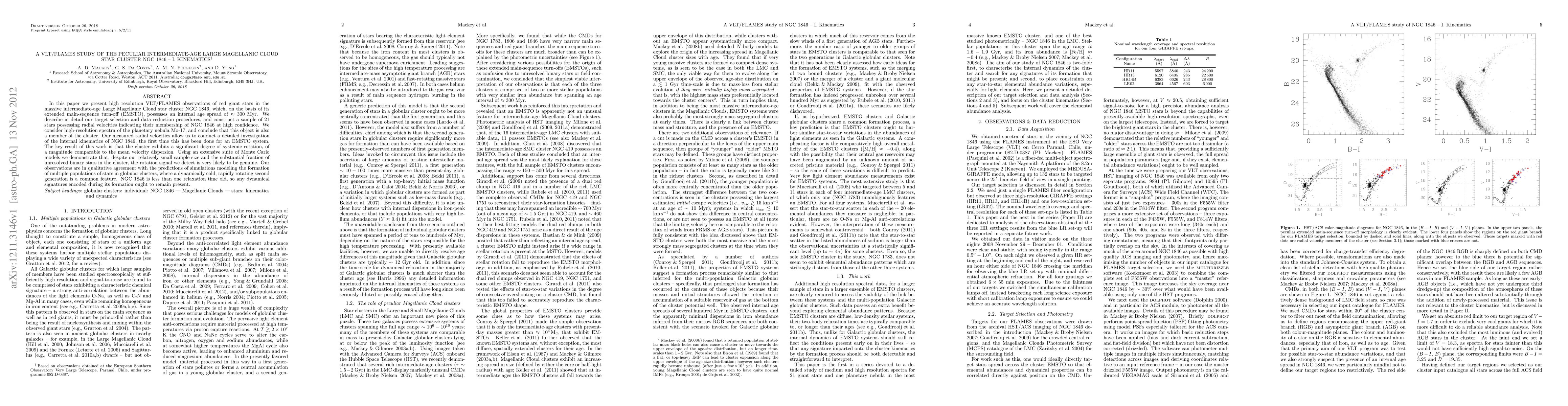This study uses VLT/FLAMES observations to analyze the kinematics of the star cluster NGC 1846 in the Large Magellanic Cloud, revealing significant systemic rotation within the cluster. The findings suggest a dynamically cold, rapidly rotating second generation, consistent with simulations of multiple stellar populations in globular clusters.