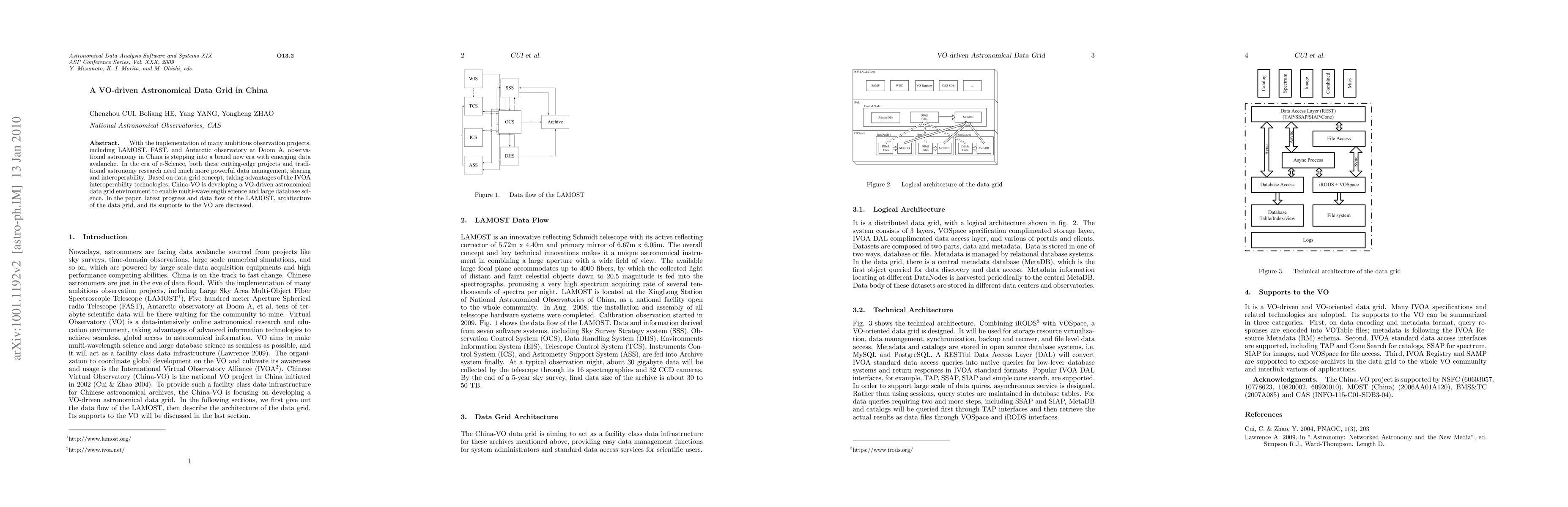 This paper discusses the development of a VO-driven astronomical data grid in China to manage and share data from projects like LAMOST and FAST. It highlights the latest progress, data flow, and the architecture supporting multi-wavelength science and large database science through IVOA interoperability technologies.