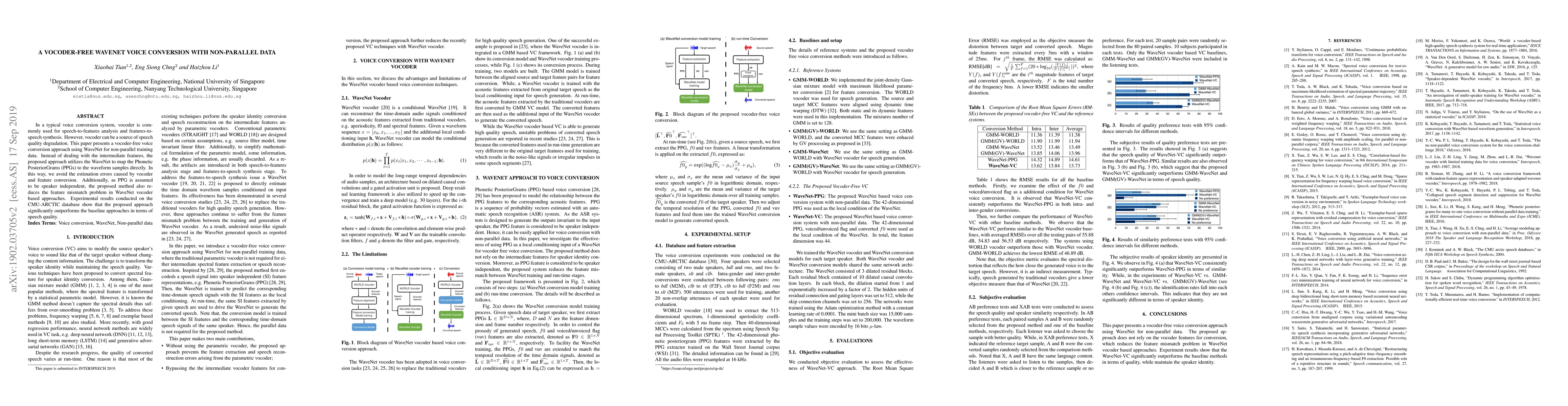 This paper proposes a vocoder-free voice conversion method using WaveNet that directly maps Phonetic PosteriorGrams (PPGs) to waveform samples, avoiding vocoder-induced quality degradation and feature mismatch issues. Experimental results on CMU-ARCTIC show superior speech quality compared to baseline vocoder-based approaches.