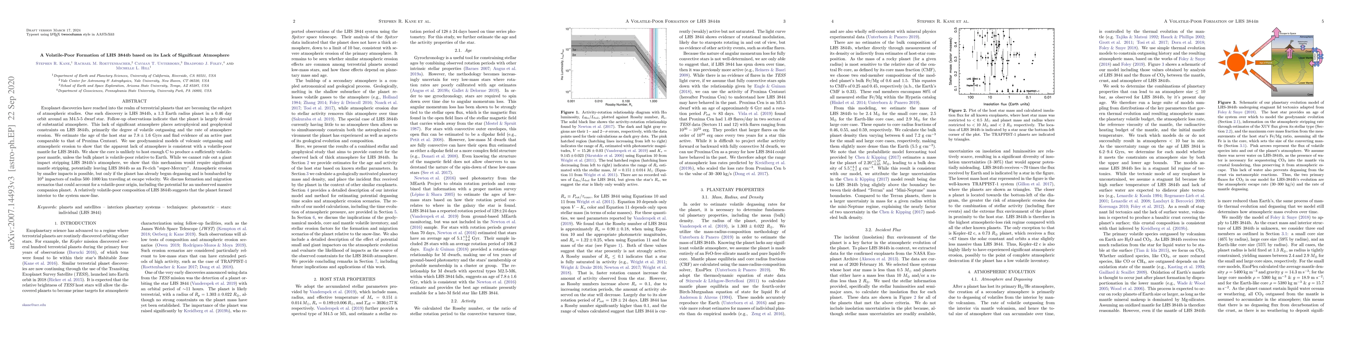 Exoplanet discoveries have reached into the realm of terrestrial planets that are becoming the subject of atmospheric studies. One such discovery is LHS 3844b, a 1.3 Earth radius planet in a 0.46 day orbit around an M4.5-5 dwarf star. Follow-up observations indicate that the planet is largely devoid of substantial atmosphere. This lack of significant atmosphere places astrophysical and geophysical constraints on LHS 3844b, primarily the degree of volatile outgassing and the rate of atmosphere erosion. We estimate the age of the host star as $7.8\pm1.6$ Gyrs and find evidence of an active past comparable to Proxima Centauri. We use geodynamical models of volcanic outgassing and atmospheric erosion to show that the apparent lack of atmosphere is consistent with a volatile-poor mantle for LHS 3844b. We show the core is unlikely to host enough C to produce a sufficiently volatile-poor mantle, unless the bulk planet is volatile-poor relative to Earth. While we cannot rule out a giant impact stripping LHS 3844b's atmosphere, we show this mechanism would require significant mantle stripping, potentially leaving LHS 3844b as an Fe-rich "super-Mercury". Atmospheric erosion by smaller impacts is possible, but only if the planet has already begun degassing and is bombarded by $10^3$ impactors of radius 500-1000 km traveling at escape velocity. We discuss formation and migration scenarios that could account for a volatile poor origin, including the potential for an unobserved massive companion planet. A relatively volatile-poor composition of LHS 3844b suggests that the planet formed interior to the system snow-line.