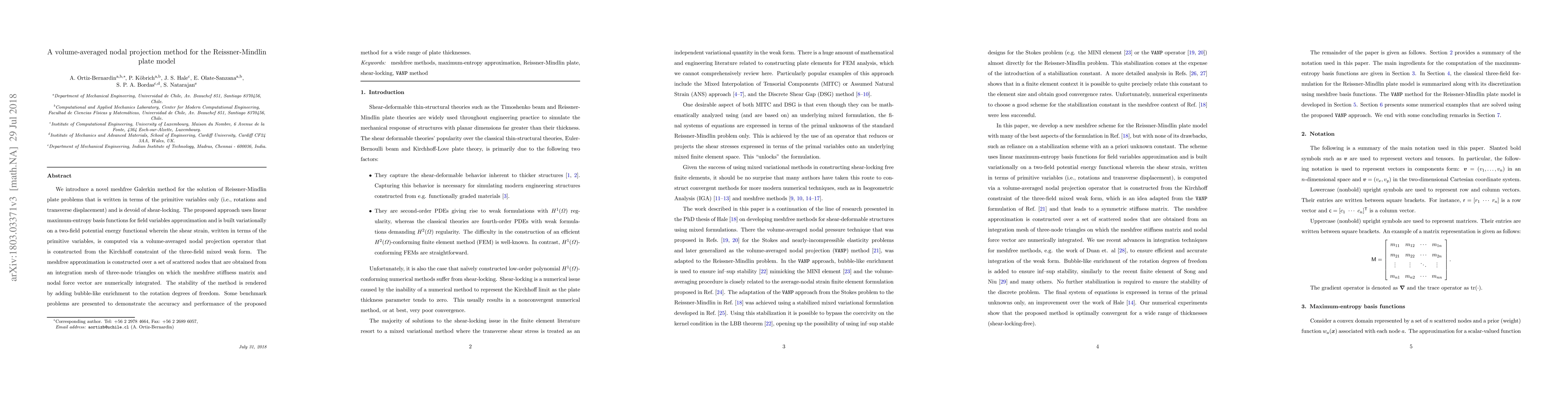 A new meshfree method is introduced for solving Reissner-Mindlin plate problems with no shear-locking issues, using linear approximations and a novel volume-averaged nodal projection operator.