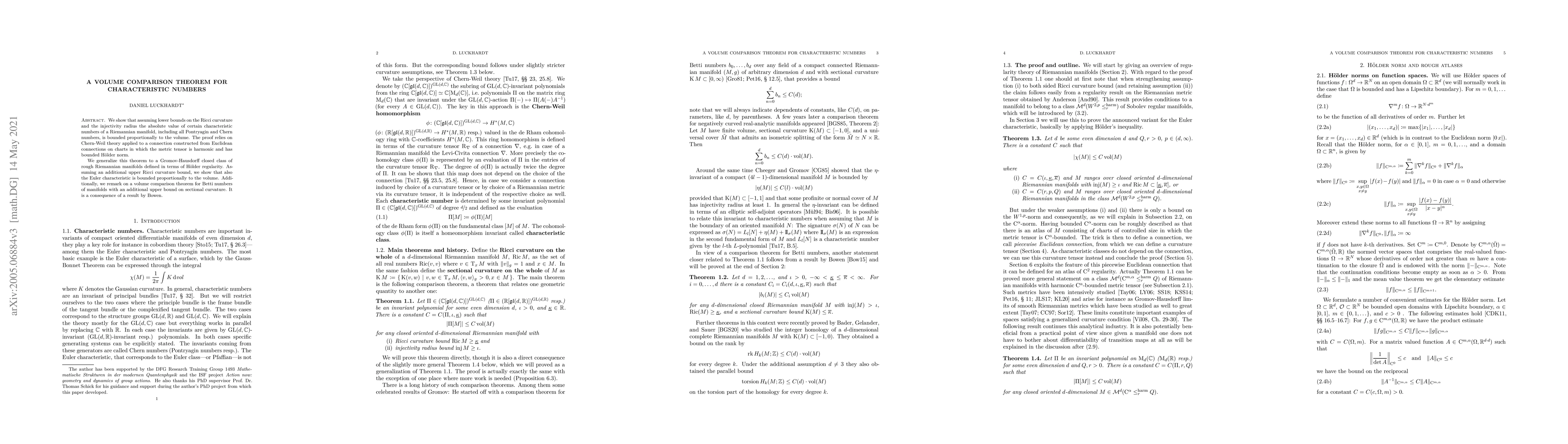 Researchers prove a theorem linking characteristic numbers of Riemannian manifolds to their volume, showing that these numbers can be bounded proportionally to the volume under certain conditions.