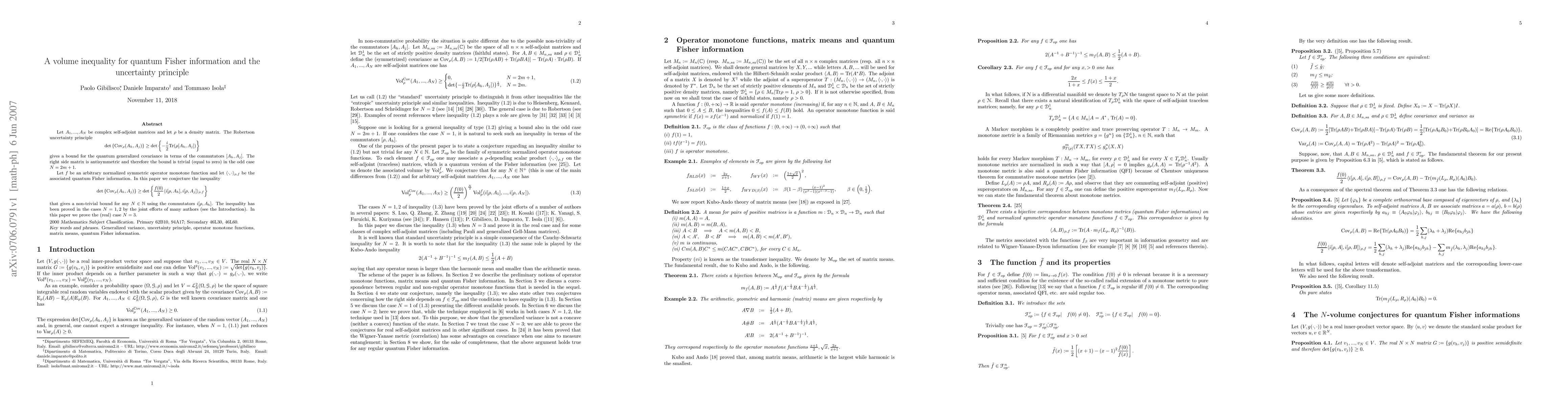 This paper proposes a volume inequality for quantum Fisher information, extending the Robertson uncertainty principle to a new form involving commutators and a symmetric operator monotone function. The authors prove the inequality for $N=3$ using real matrices, building on previous proofs for $N=1$ and $2$.