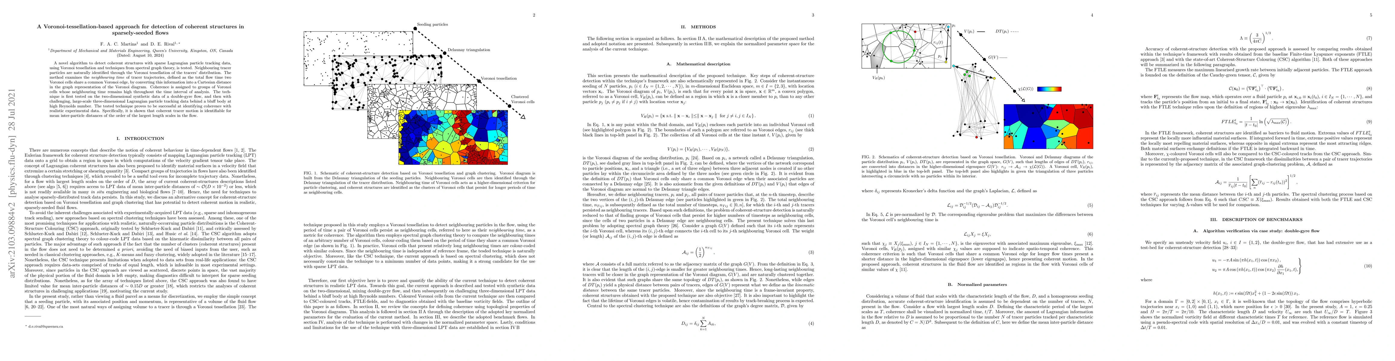 This paper proposes a Voronoi-tessellation-based algorithm to detect coherent structures using sparse Lagrangian particle tracking data. The method identifies coherent tracer motion by analyzing the "neighbouring time" of tracer particles, demonstrating success in both synthetic and large-scale experimental data.