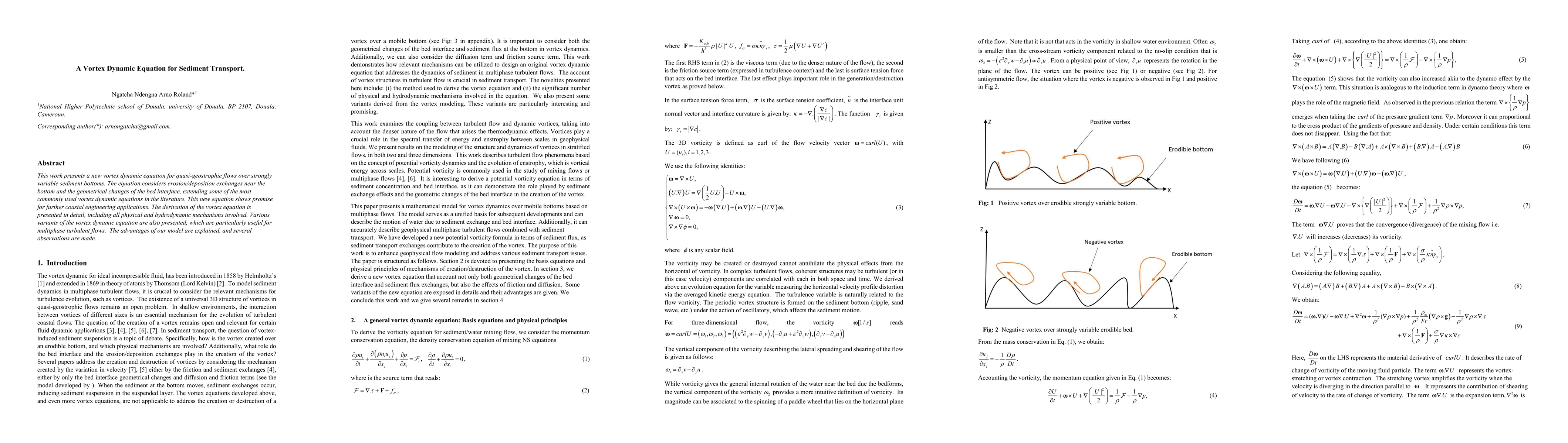 The paper presents a detailed derivation of a new vortex dynamic equation that extends existing models by incorporating sediment exchanges and geometrical changes of the bed interface.