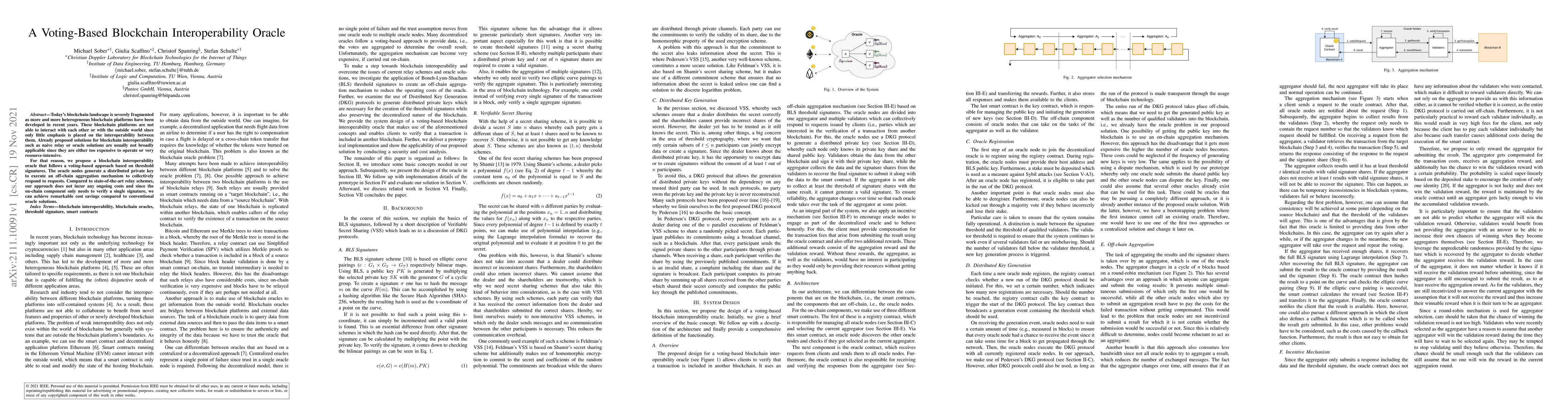 Today's blockchain landscape is severely fragmented as more and more heterogeneous blockchain platforms have been developed in recent years. These blockchain platforms are not able to interact with each other or with the outside world since only little emphasis is placed on the interoperability between them. Already proposed solutions for blockchain interoperability such as naive relay or oracle solutions are usually not broadly applicable since they are either too expensive to operate or very resource-intensive. For that reason, we propose a blockchain interoperability oracle that follows a voting-based approach based on threshold signatures. The oracle nodes generate a distributed private key to execute an off-chain aggregation mechanism to collectively respond to requests. Compared to state-of-the-art relay schemes, our approach does not incur any ongoing costs and since the on-chain component only needs to verify a single signature, we can achieve remarkable cost savings compared to conventional oracle solutions.