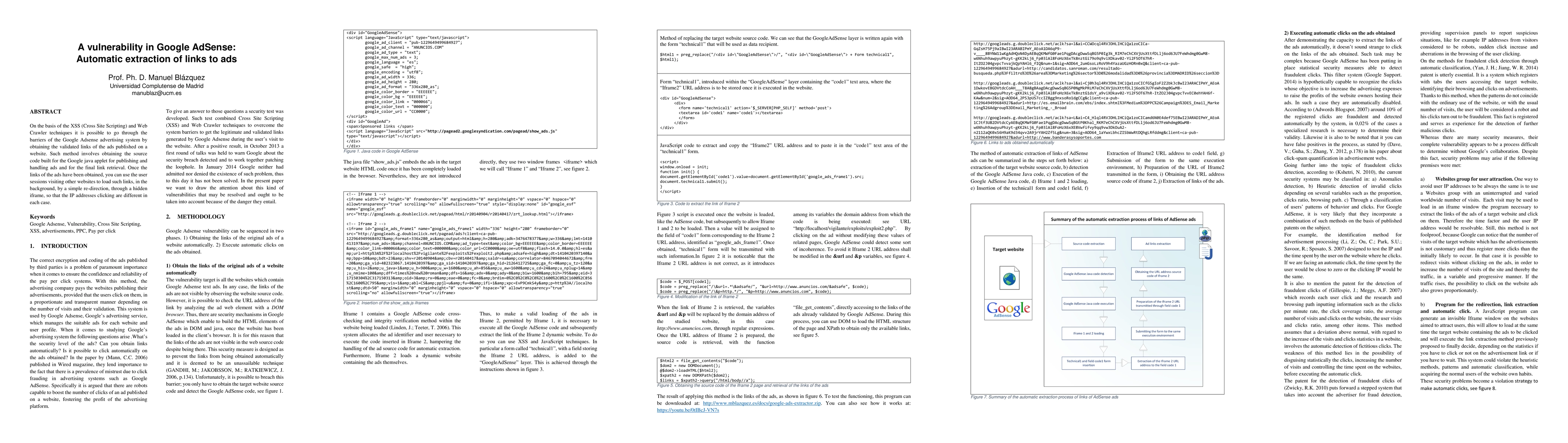 On the basis of the XSS (Cross Site Scripting) and Web Crawler techniques it is possible to go through the barriers of the Google Adsense advertising system by obtaining the validated links of the ads published on a website. Such method involves obtaining the source code built for the Google java applet for publishing and handling ads and for the final link retrieval. Once the links of the ads have been obtained, you can use the user sessions visiting other websites to load such links, in the background, by a simple re-direction, through a hidden iframe, so that the IP addresses clicking are different in each case.