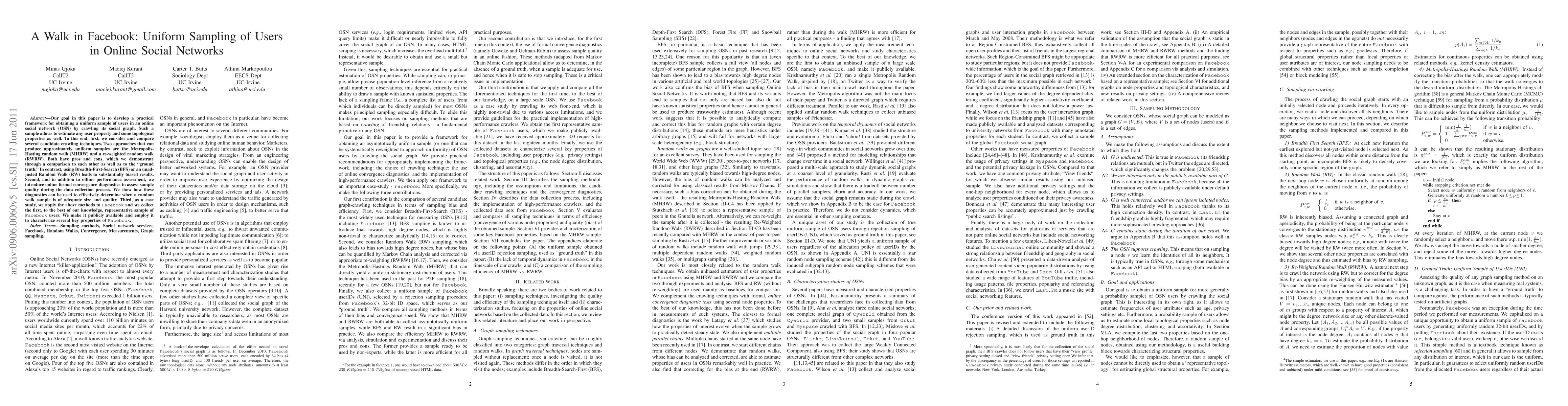 A combination of uniform sampling and rejectionsampling was used to collect a large dataset of Facebook users.
