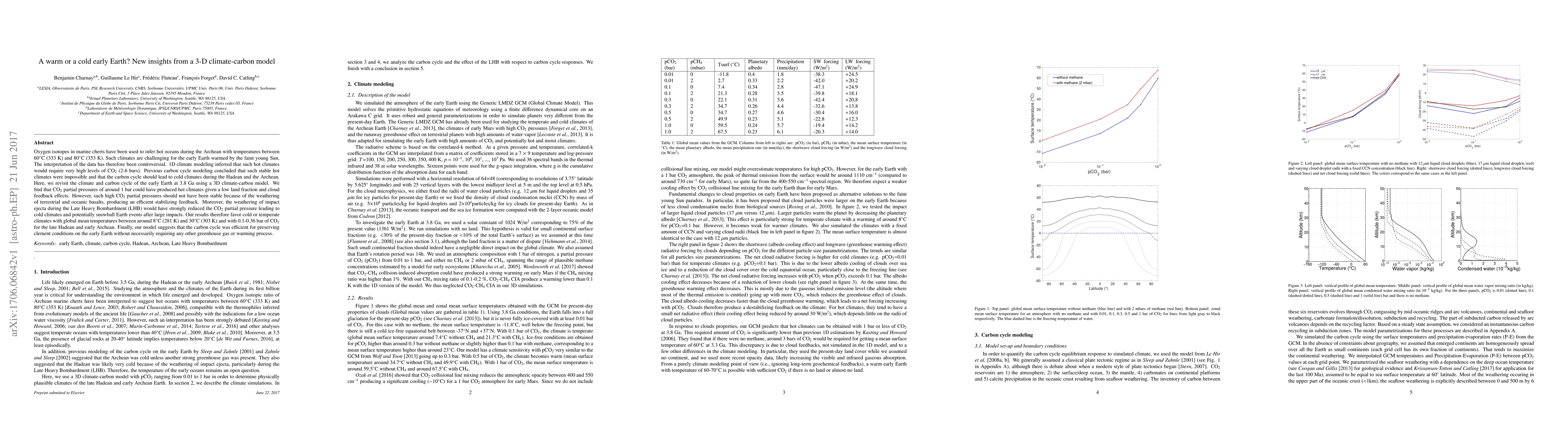 A 3D climate-carbon model suggests that early Earth temperatures were likely between 8-30C with low CO2 levels, contradicting previous high-CO2 hot climates, and instead supports a cold or temperate climate scenario.