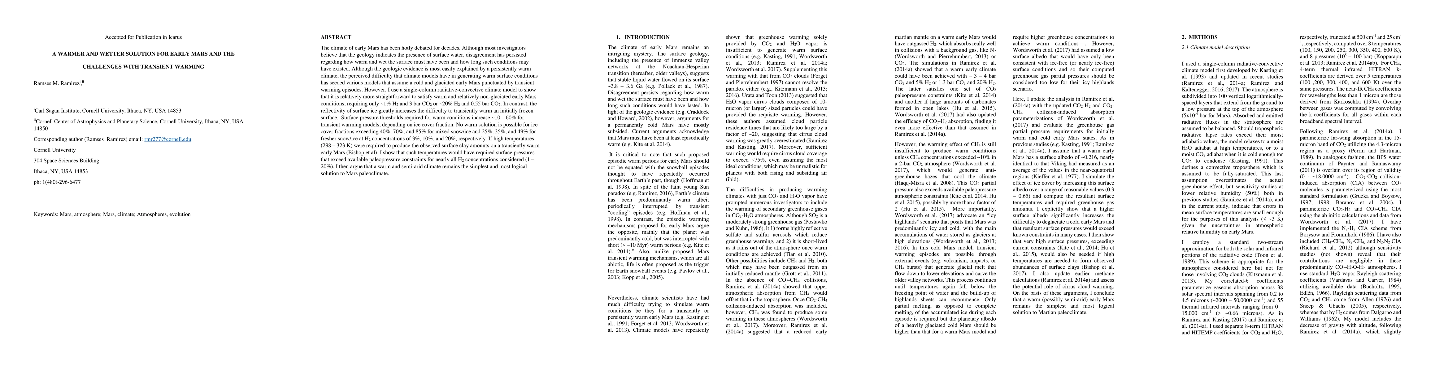 This paper argues that a persistently warm and wet climate on early Mars is more feasible than transient warming episodes, using a single-column radiative-convective model to demonstrate that high CO2 and H2 concentrations can maintain warm conditions, while transient warming becomes increasingly difficult with surface ice cover.