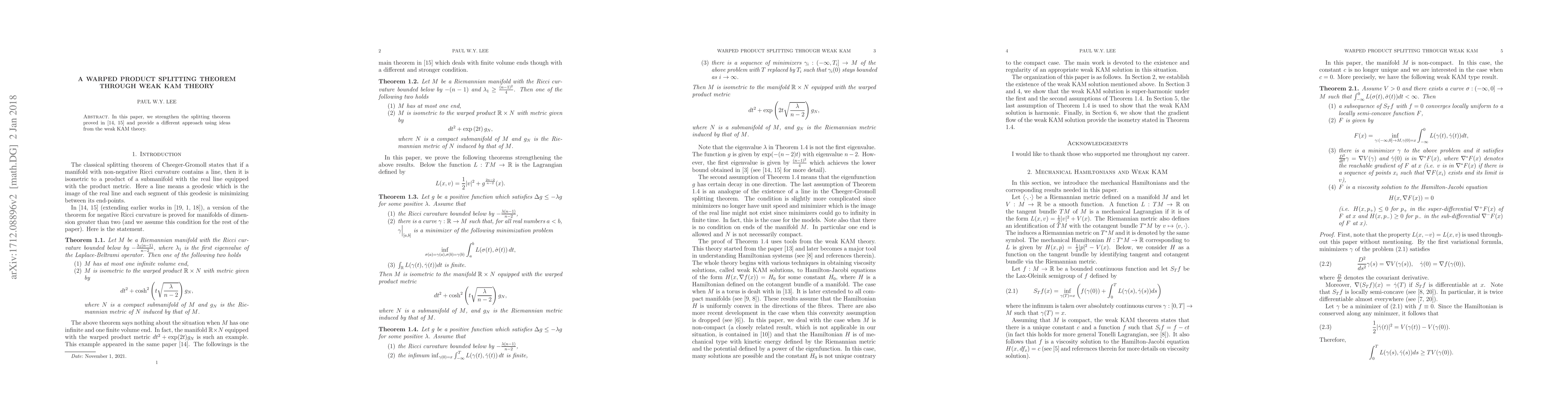 Summary: This paper enhances the splitting theorem initially established in previous works by employing novel techniques from weak KAM theory, offering a distinct methodological approach.