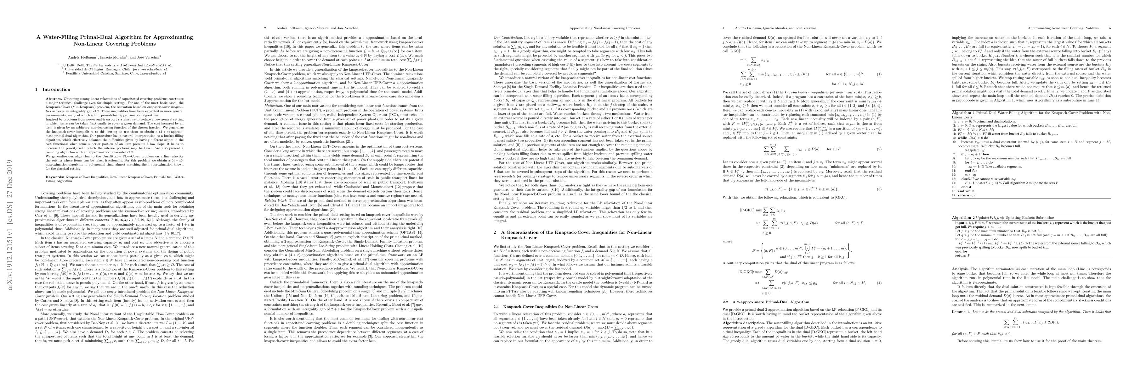 Obtaining strong linear relaxations of capacitated covering problems constitute a major technical challenge even for simple settings. For one of the most basic cases, the Knapsack-Cover (Min-Knapsack) problem, the relaxation based on knapsack-cover inequalities achieves an integrality gap of 2. These inequalities have been exploited in more general environments, many of which admit primal-dual approximation algorithms. Inspired by problems from power and transport systems, we introduce a new general setting in which items can be taken fractionally to cover a given demand. The cost incurred by an item is given by an arbitrary non-decreasing function of the chosen fraction. We generalize the knapsack-cover inequalities to this setting an use them to obtain a $(2+\varepsilon)$-approximate primal-dual algorithm. Our procedure has a natural interpretation as a bucket-filling algorithm, which effectively balances the difficulties given by having different slopes in the cost functions: when some superior portion of an item presents a low slope, it helps to increase the priority with which the inferior portions may be taken. We also present a rounding algorithm with an approximation guarantee of 2. We generalize our algorithm to the Unsplittable Flow-Cover problem on a line, also for the setting where items can be taken fractionally. For this problem we obtain a $(4+\varepsilon)$-approximation algorithm in polynomial time, almost matching the $4$-approximation known for the classical setting.