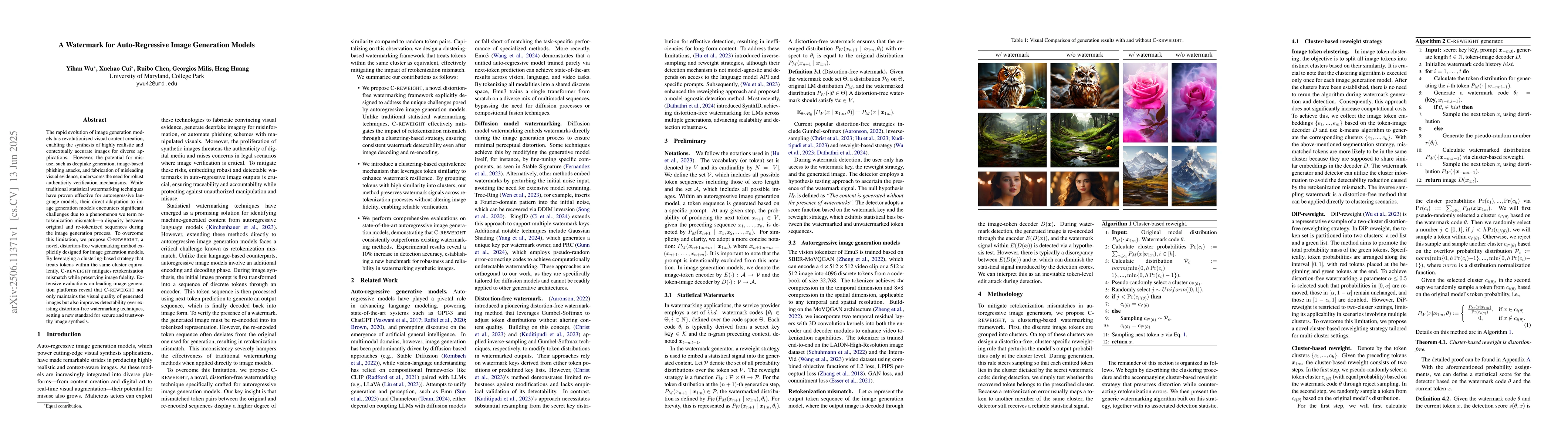 The rapid evolution of image generation models has revolutionized visual content creation, enabling the synthesis of highly realistic and contextually accurate images for diverse applications. However, the potential for misuse, such as deepfake generation, image based phishing attacks, and fabrication of misleading visual evidence, underscores the need for robust authenticity verification mechanisms. While traditional statistical watermarking techniques have proven effective for autoregressive language models, their direct adaptation to image generation models encounters significant challenges due to a phenomenon we term retokenization mismatch, a disparity between original and retokenized sequences during the image generation process. To overcome this limitation, we propose C-reweight, a novel, distortion-free watermarking method explicitly designed for image generation models. By leveraging a clustering-based strategy that treats tokens within the same cluster equivalently, C-reweight mitigates retokenization mismatch while preserving image fidelity. Extensive evaluations on leading image generation platforms reveal that C-reweight not only maintains the visual quality of generated images but also improves detectability over existing distortion-free watermarking techniques, setting a new standard for secure and trustworthy image synthesis.