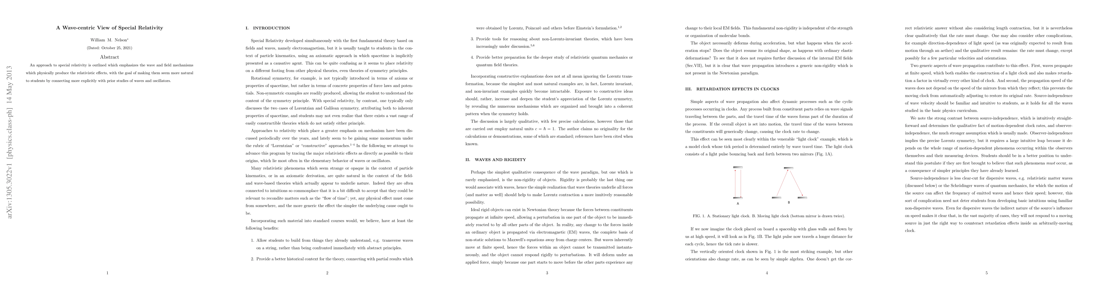 An approach to special relativity is outlined which emphasizes the wave and field mechanisms which physically produce the relativistic effects, with the goal of making them seem more natural to students by connecting more explicitly with prior studies of waves and oscillators.